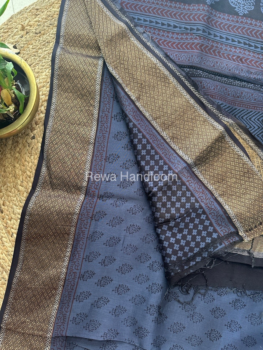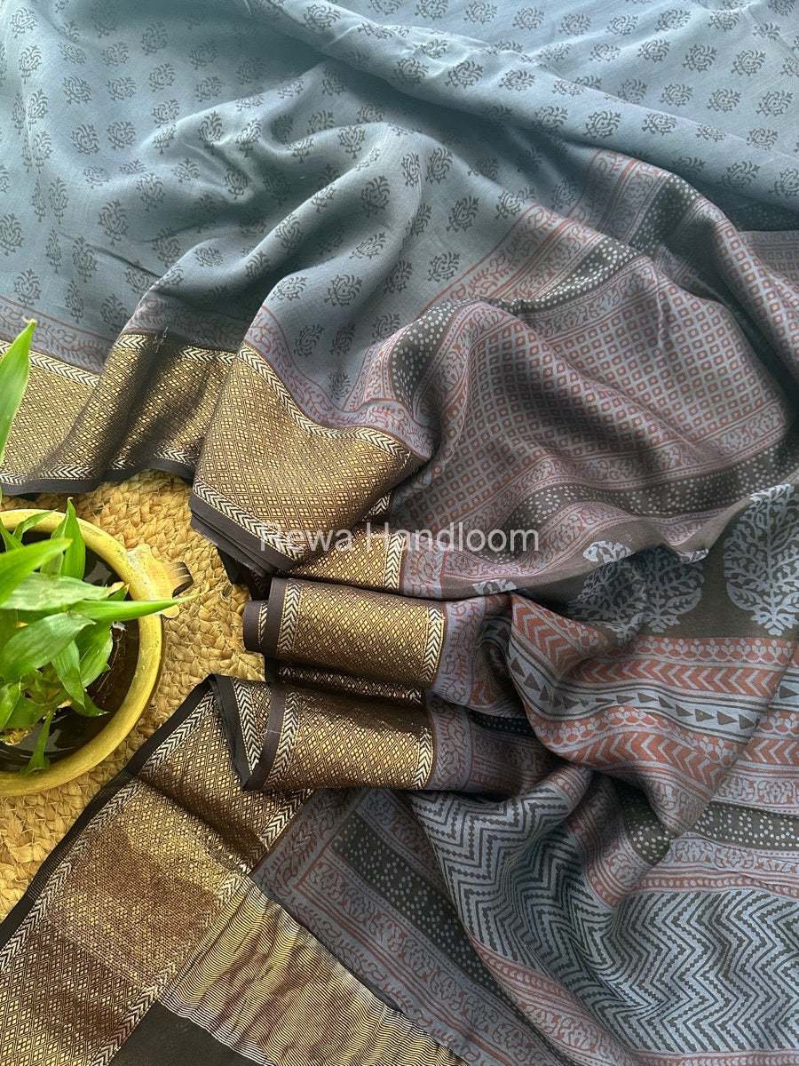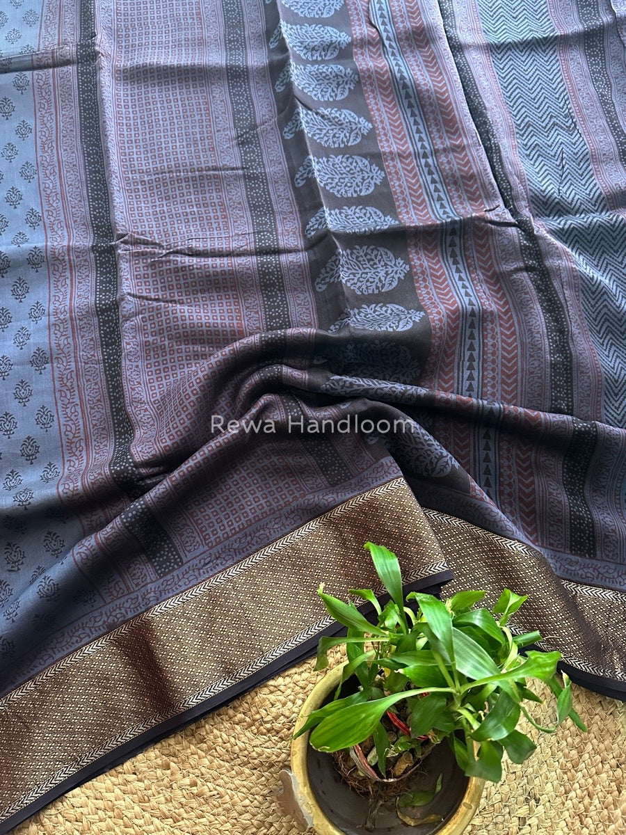 Maheshwari Grey Bagh Print Saree BPSS012