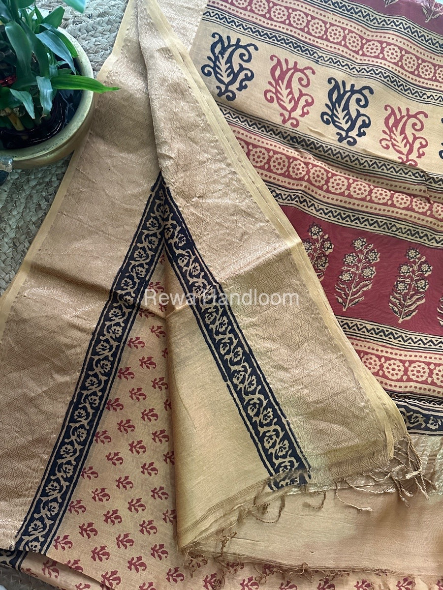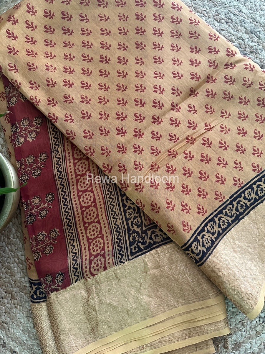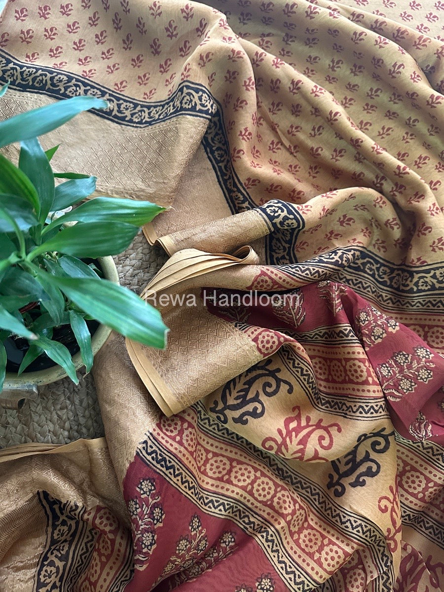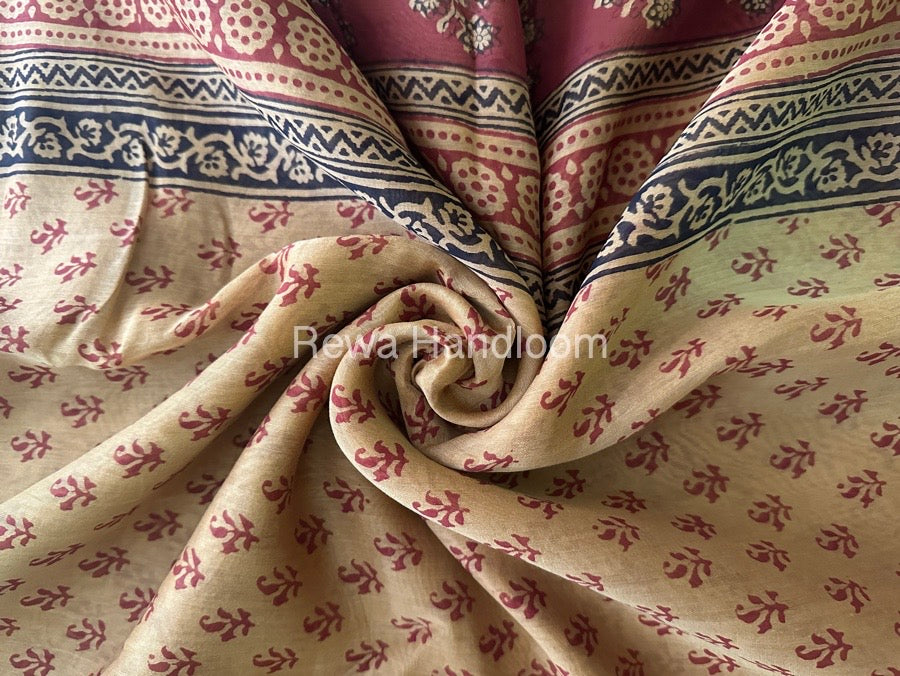 Maheshwari Light Yellow Bagh Print Saree BPSS014
