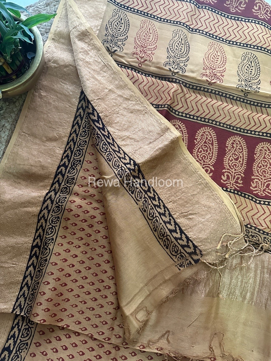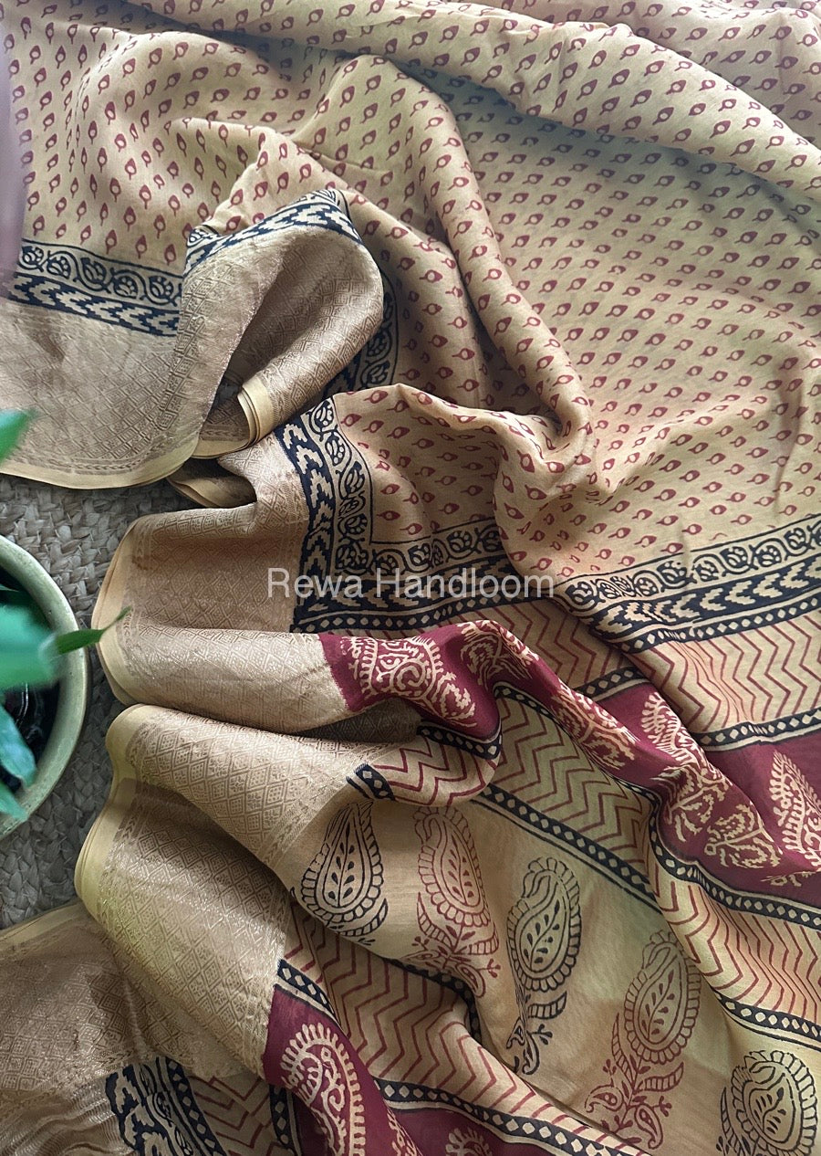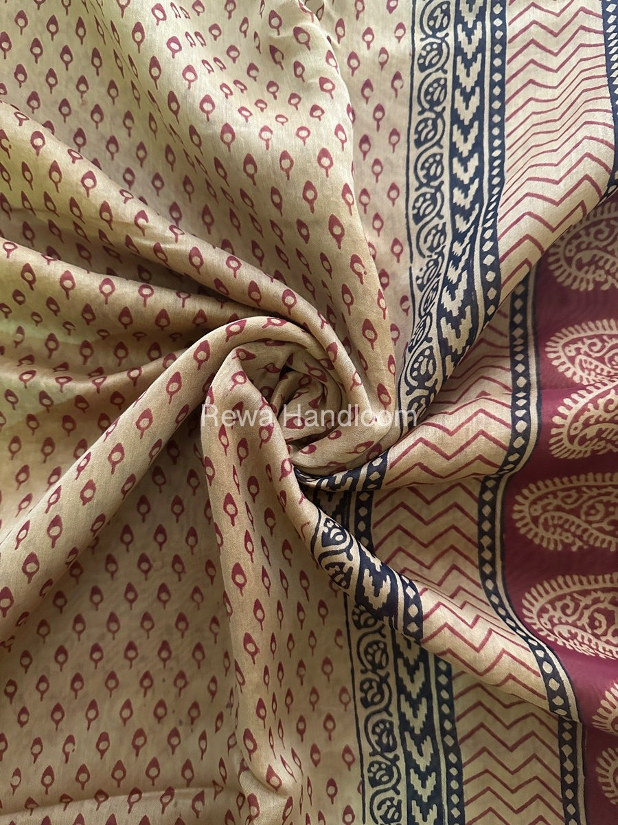 Maheshwari Light Yellow Bagh Print Saree BPSS044