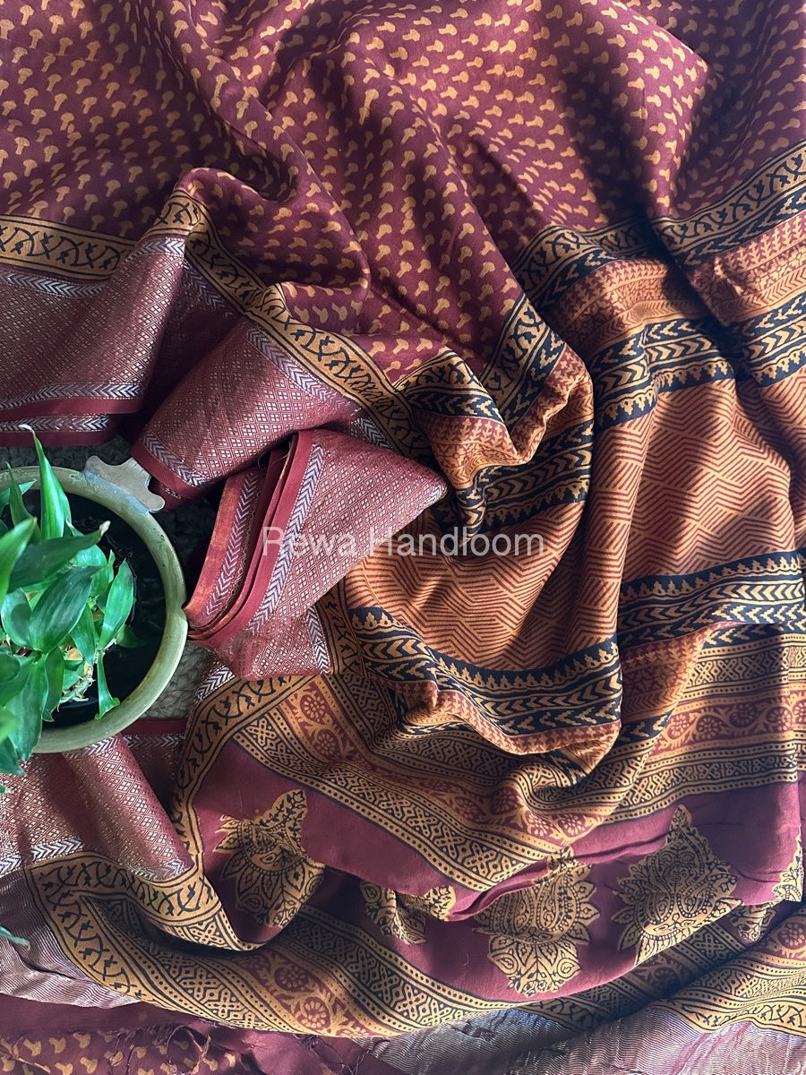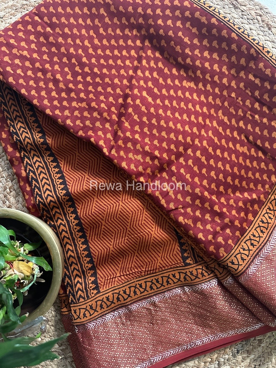Maheshwari Maroon Bagh Print Saree BPSS033