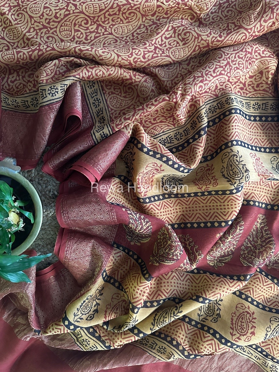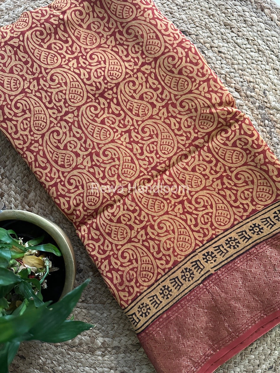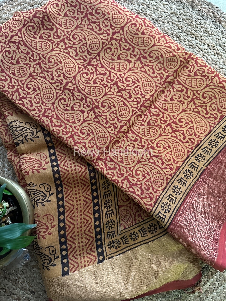 Maheshwari Red Bagh Print Saree BPSS016