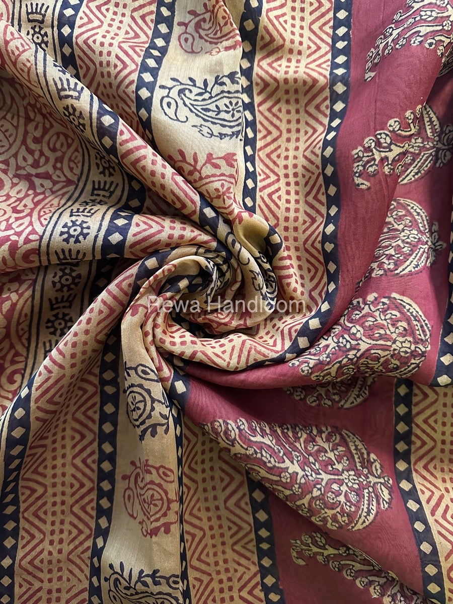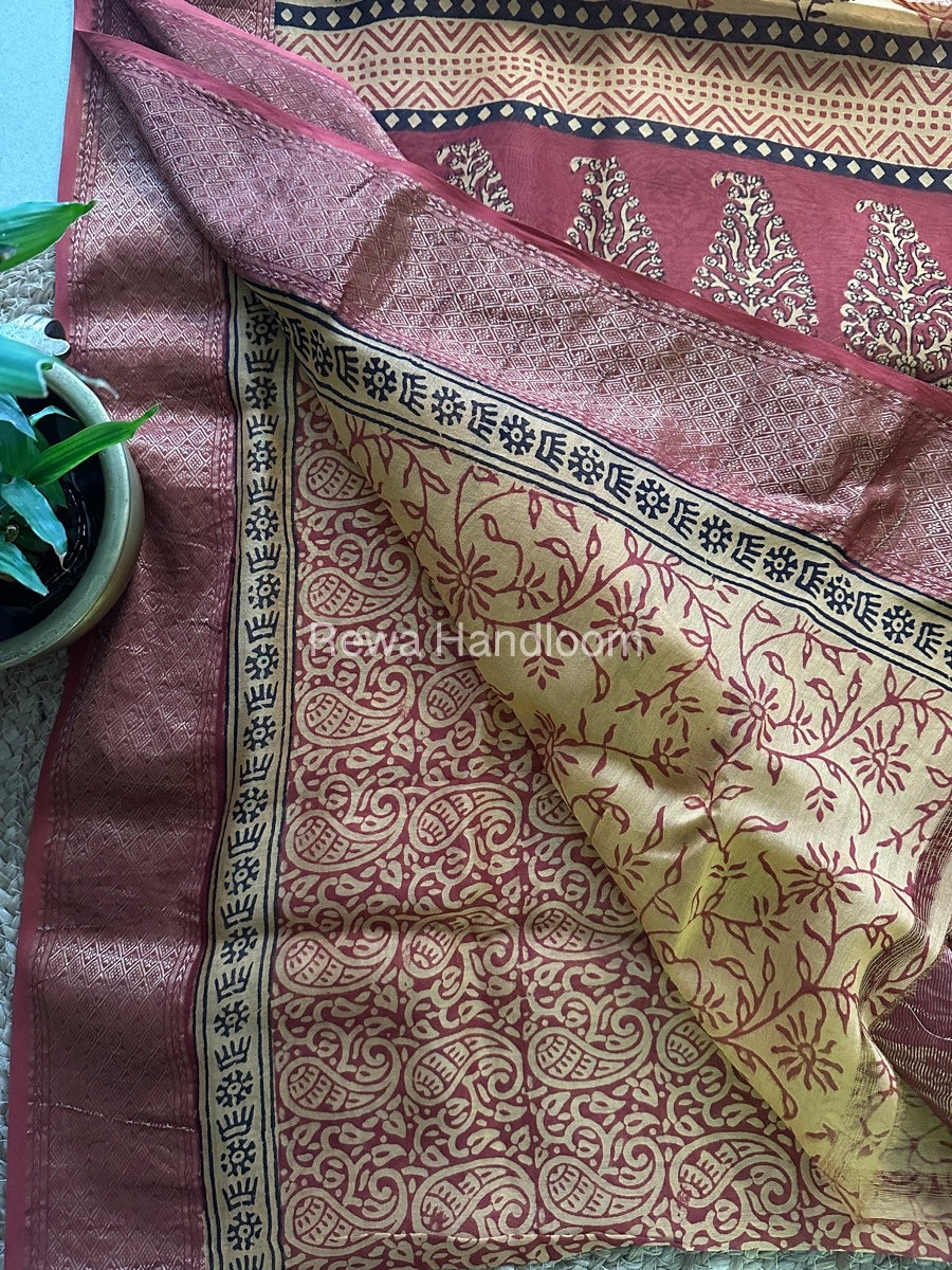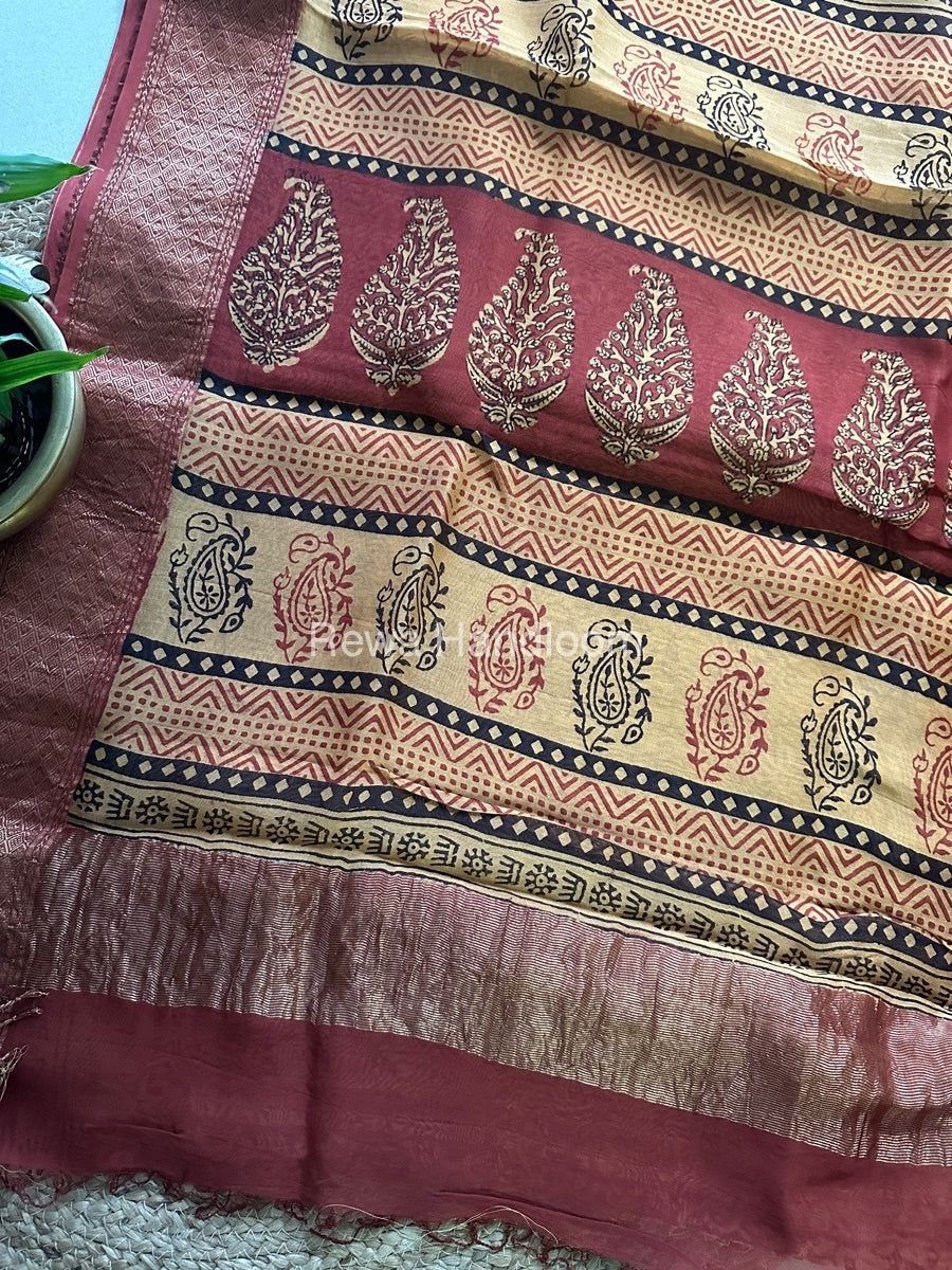 Maheshwari Red Bagh Print Saree BPSS016