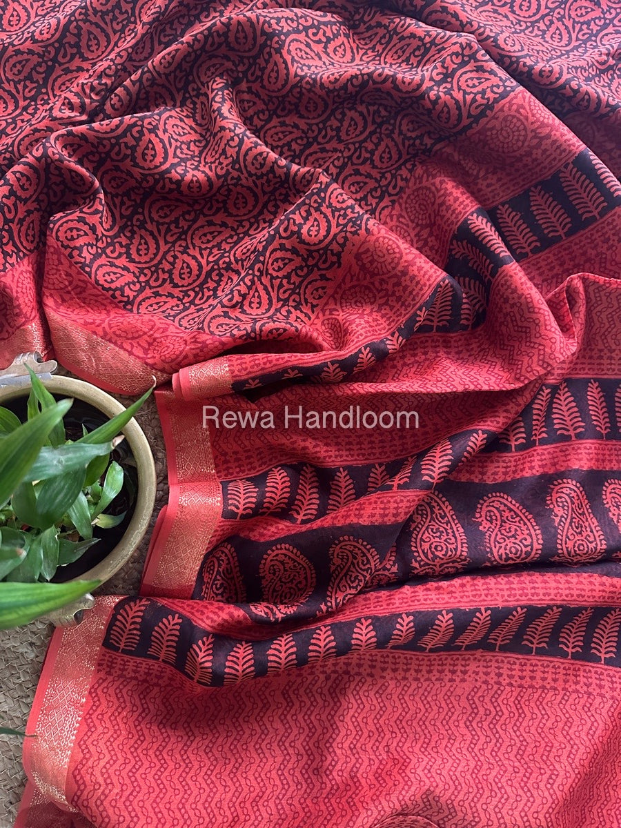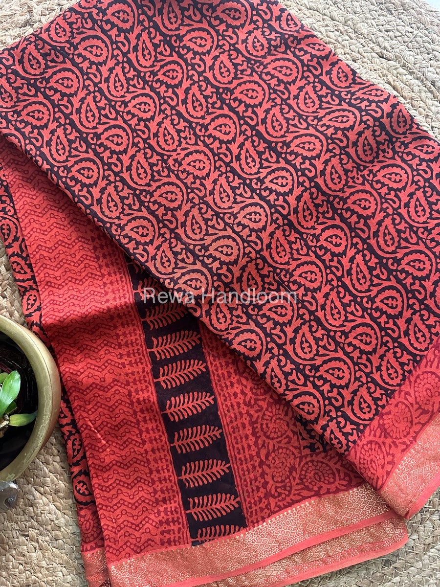 Maheshwari Rust Orange Bagh Print Small Border Saree MTBS020