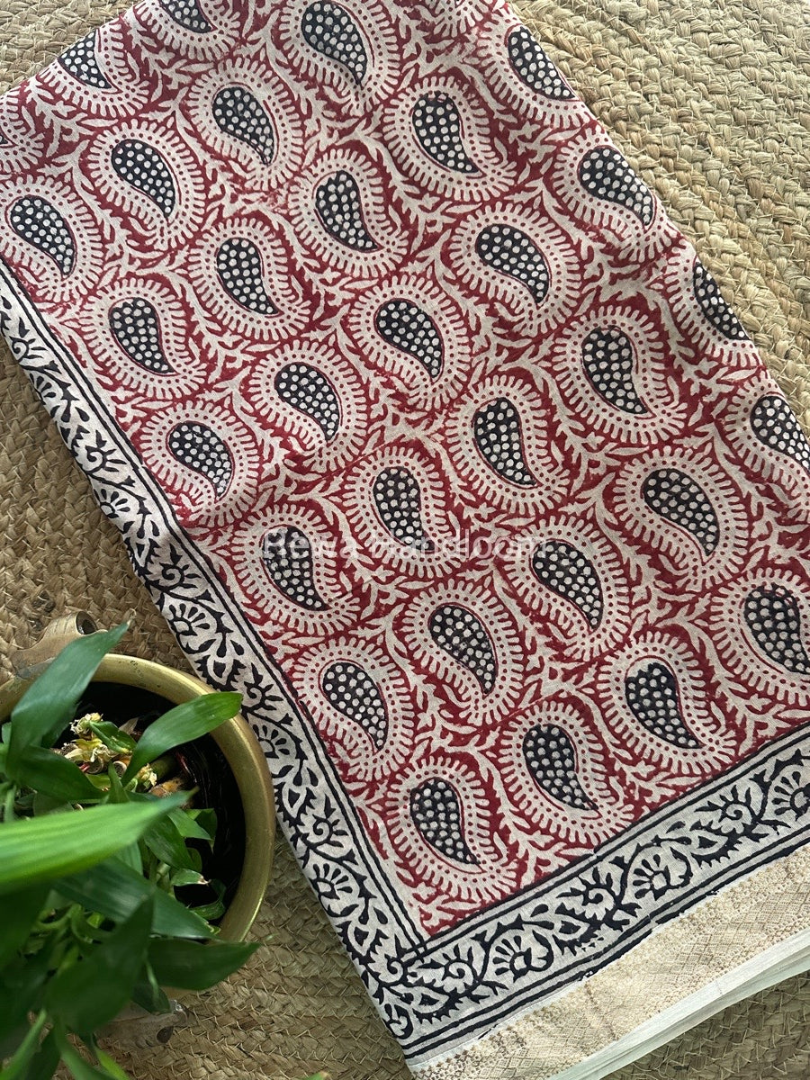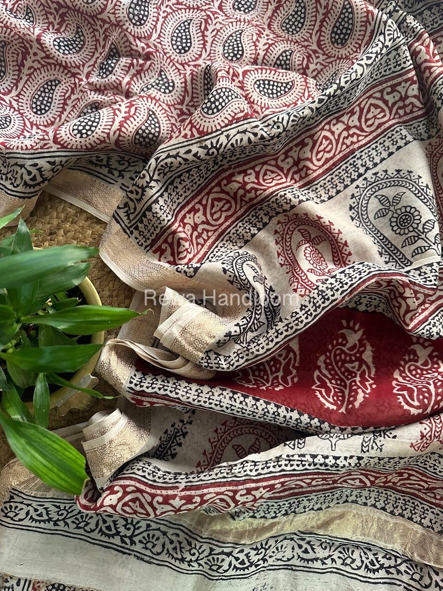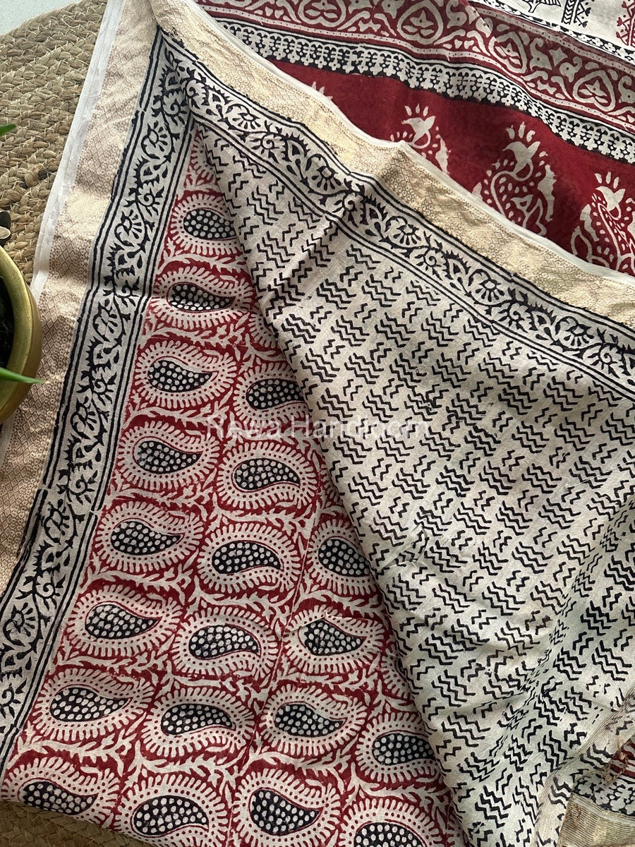 Maheshwari White Red Bagh Print Small Border Saree MTBS031