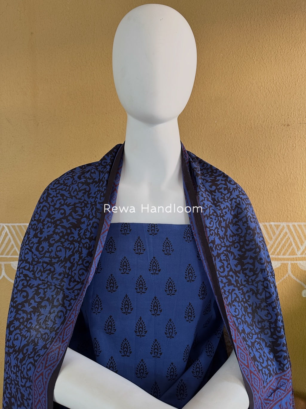Blue-Black Bagh Print Cotton Suit BGCSJ018