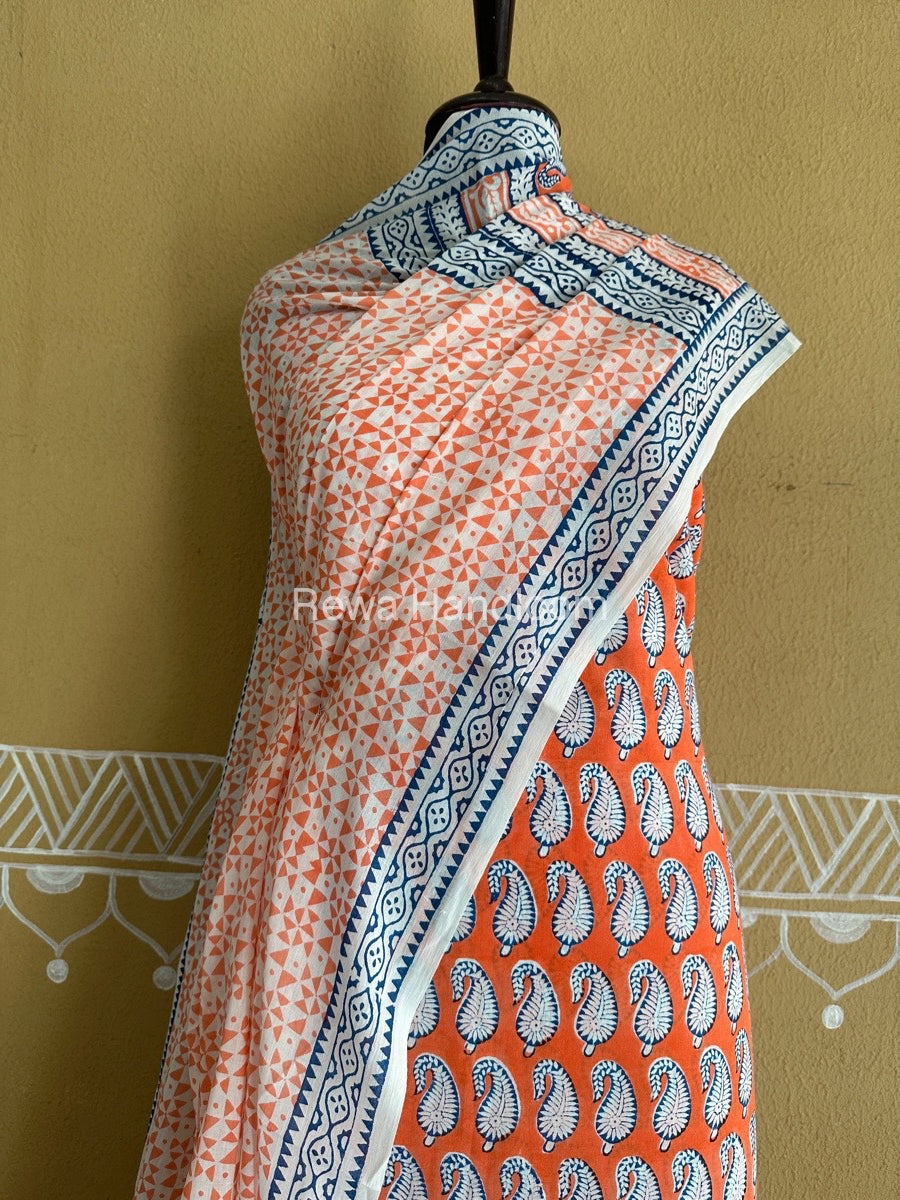 Orange-Blue Bagh Print Cotton Suit BCSP0161