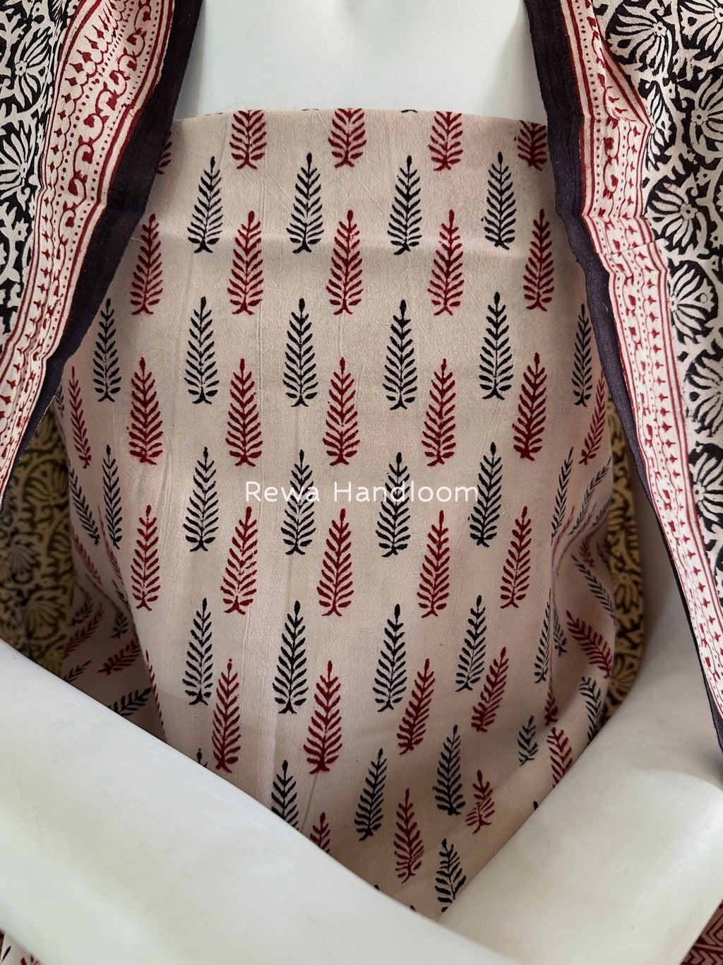 White-Black Bagh Print Cotton Suit BGCSJ07
