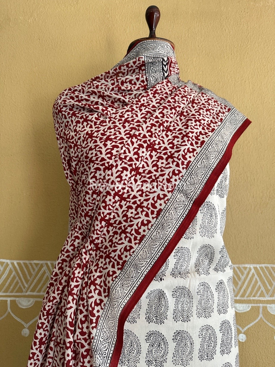 White-Maroon Bagh Print Cotton Suit BCSP0147