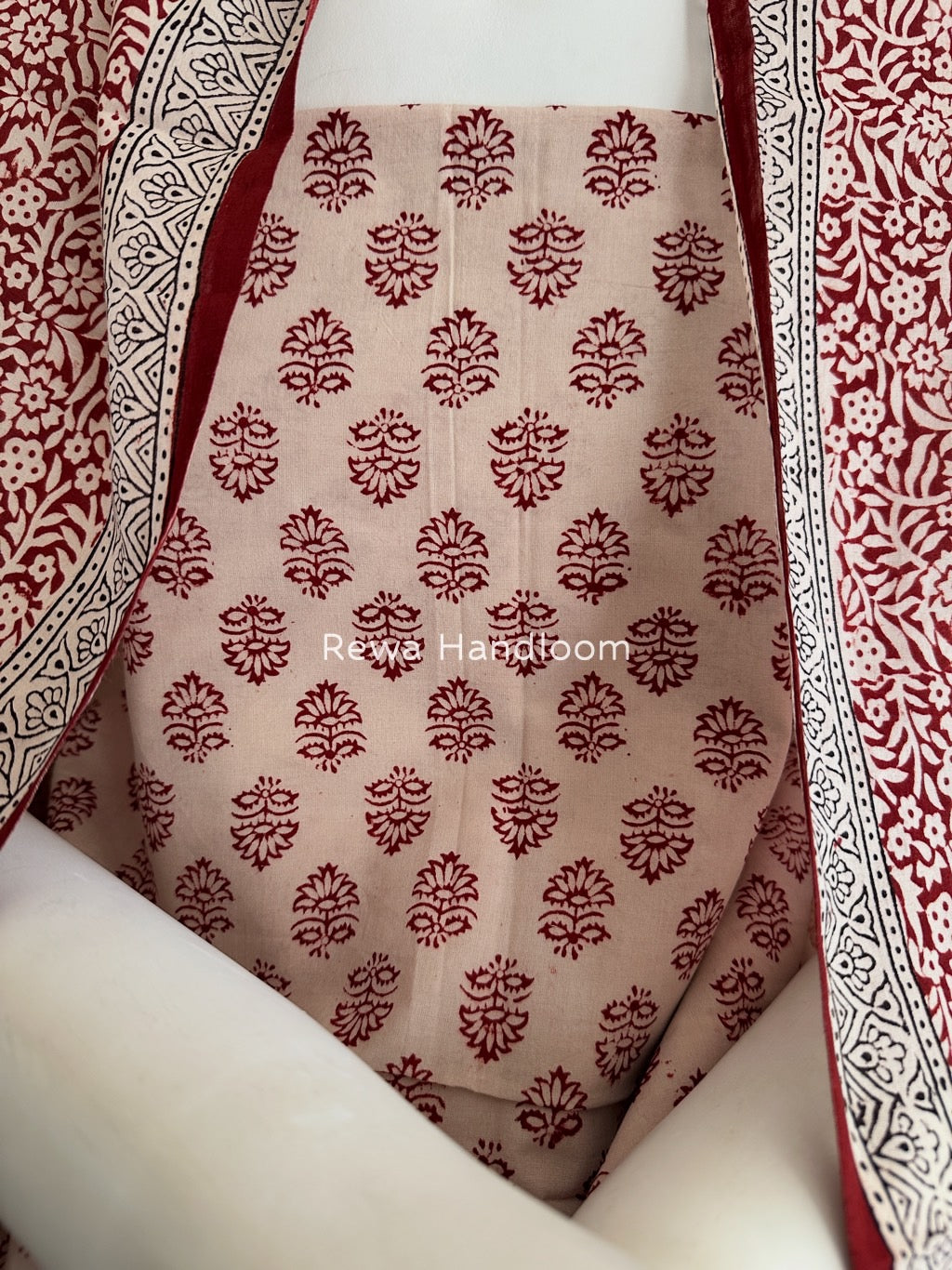 White-Maroon Bagh Print Cotton Suit BGCSJ011
