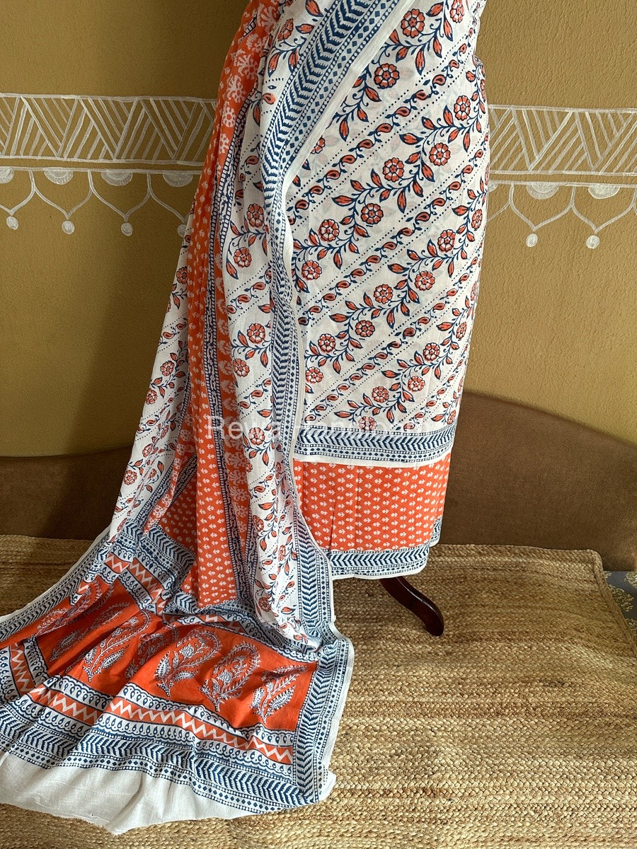 White-Orange Bagh Print Cotton Suit BCSP0153