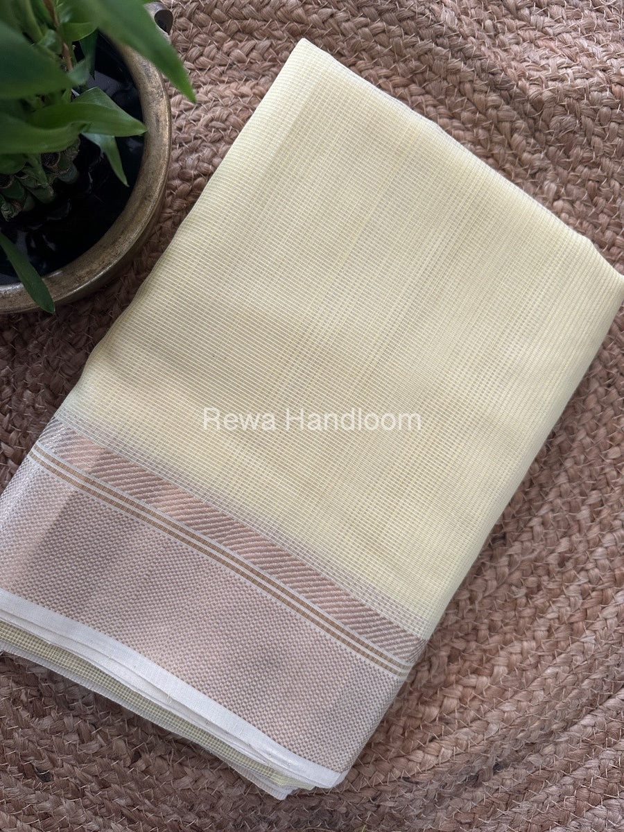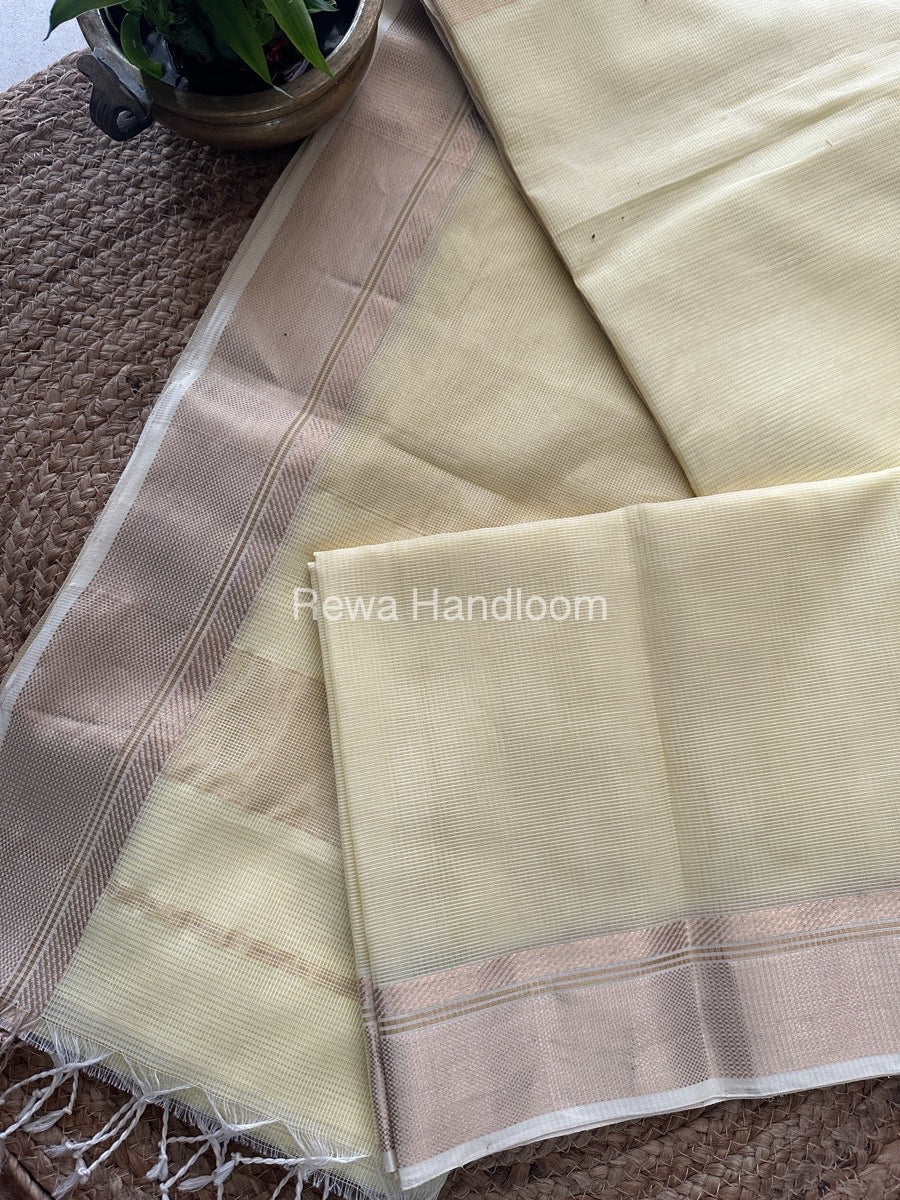 Exclusive Maheswari Self Checks Light Yellow Saree MCS074
