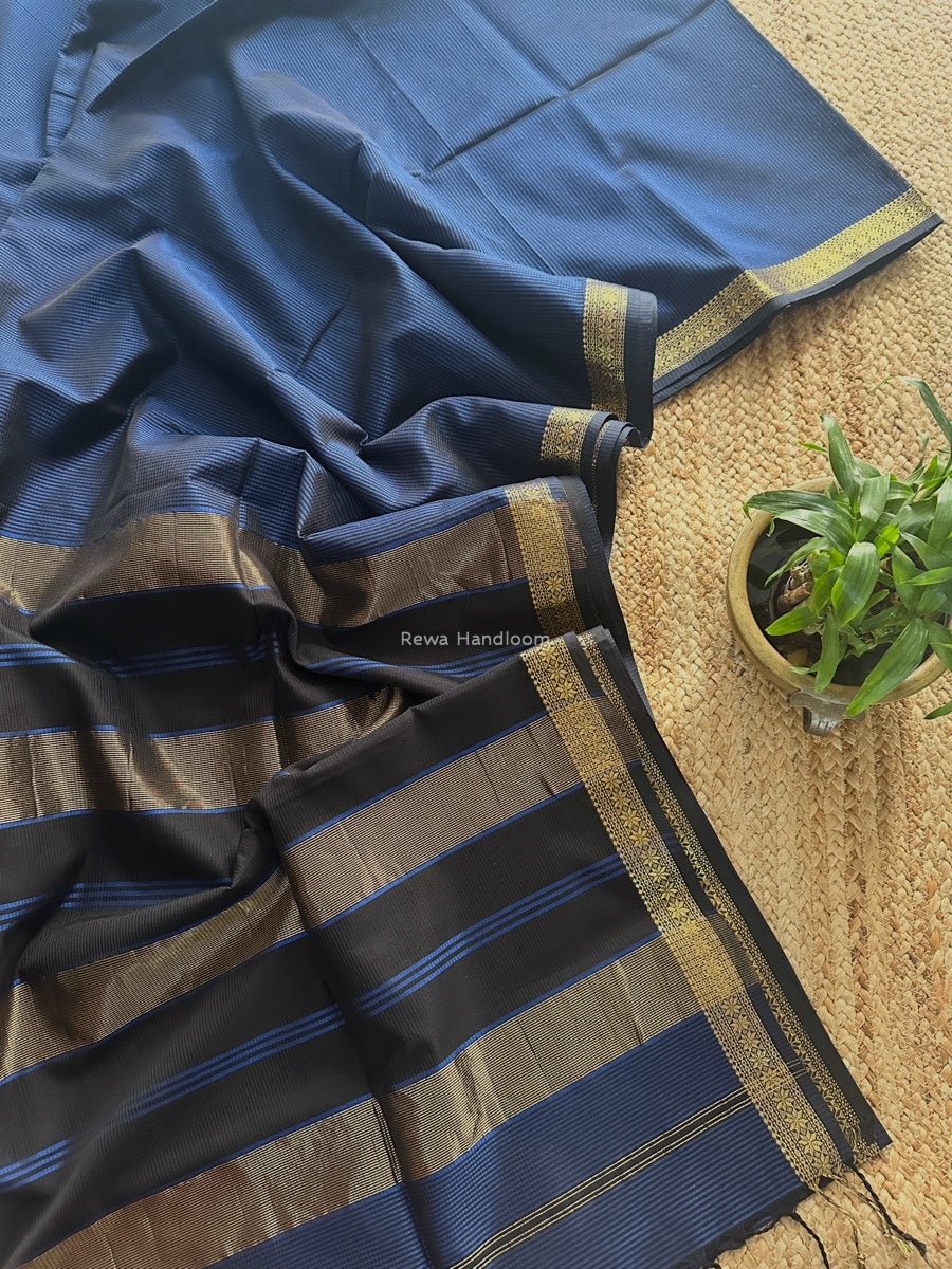 Maheshwari Dark Blue Garbha Reshami Silk Saree GS264