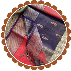 Buy Garbha Reshami Silk Sarees online handcrafted by skilled weavers of Rewa situated in Maheshwar, Madhya Pradesh. Garbha Reshami from the name itself 75 percent Mulberry Silk in Garbha (in the womb) and 25 percent Mercerised Cotton, Shop online for authentic Maheshwari Garbha Reshami Sarees made from naturally dyed and pure natural threads on Handloom certified by India Handloom Brand ~ Rewa.
