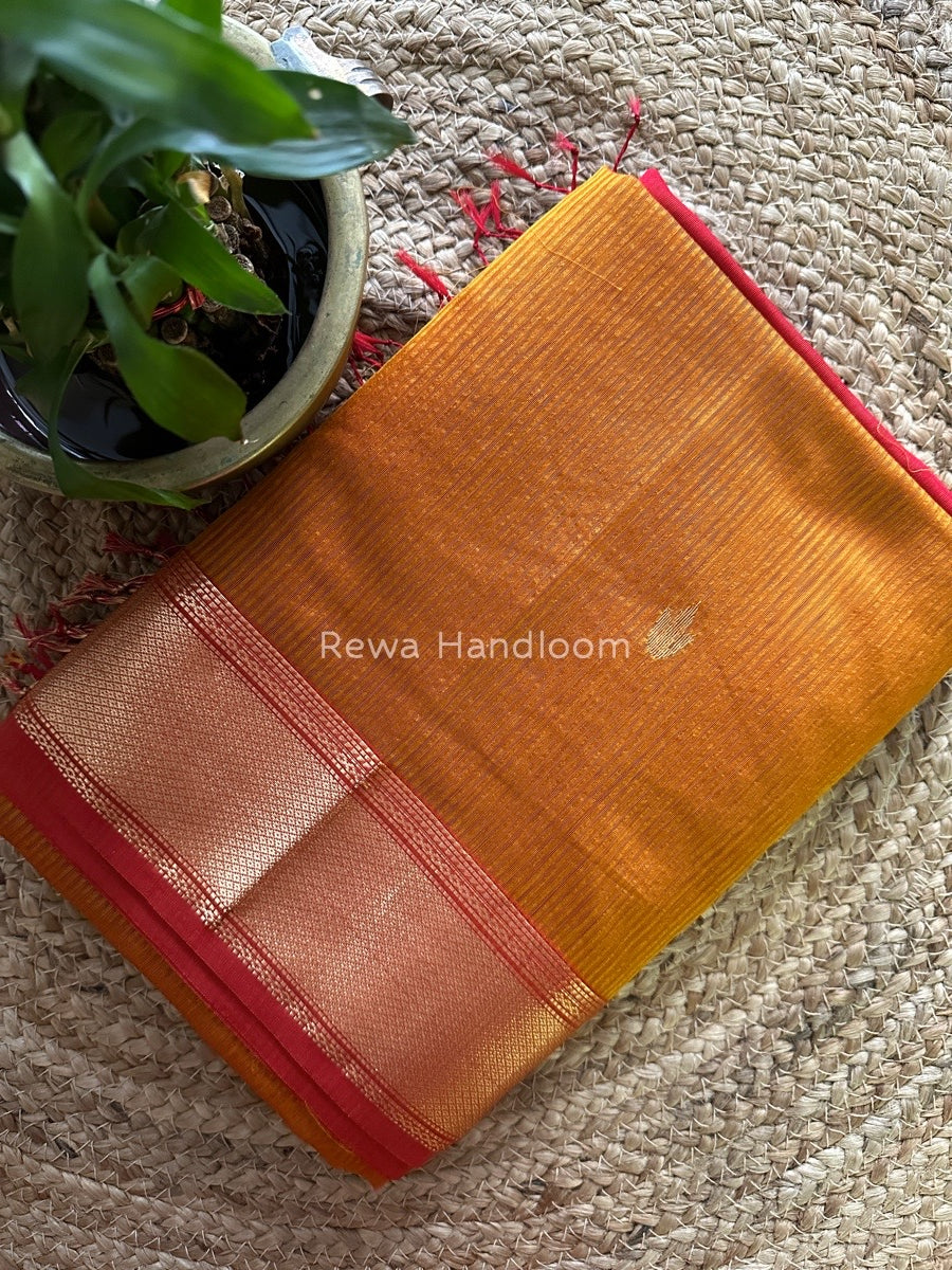 Maheshwari Butta Pallu Silk Rust Orange Saree ZM04