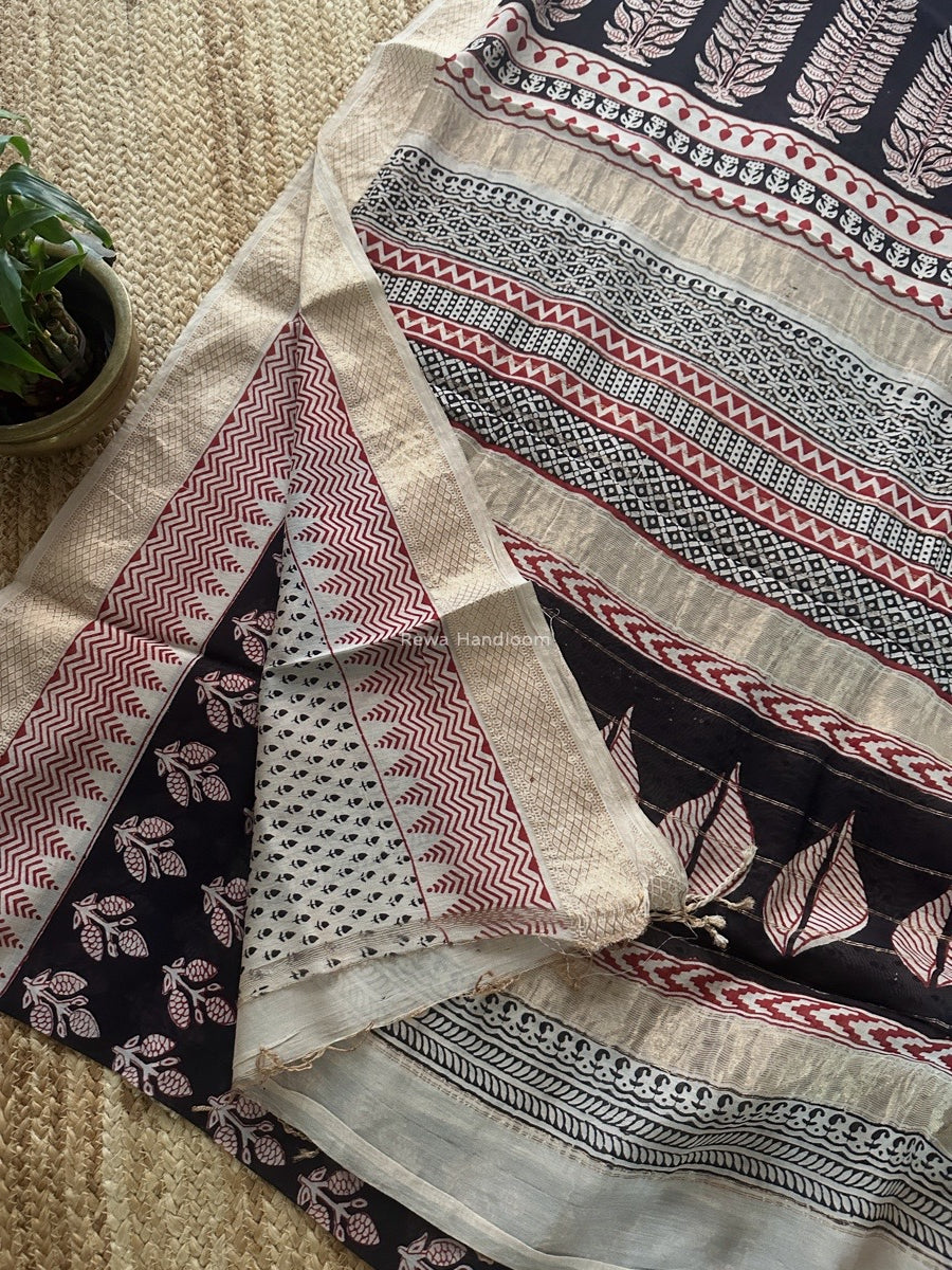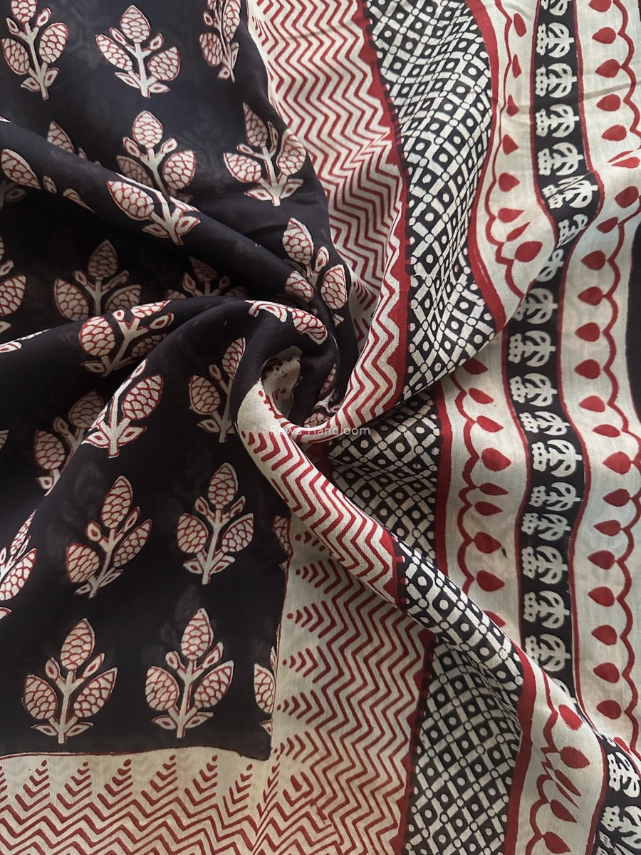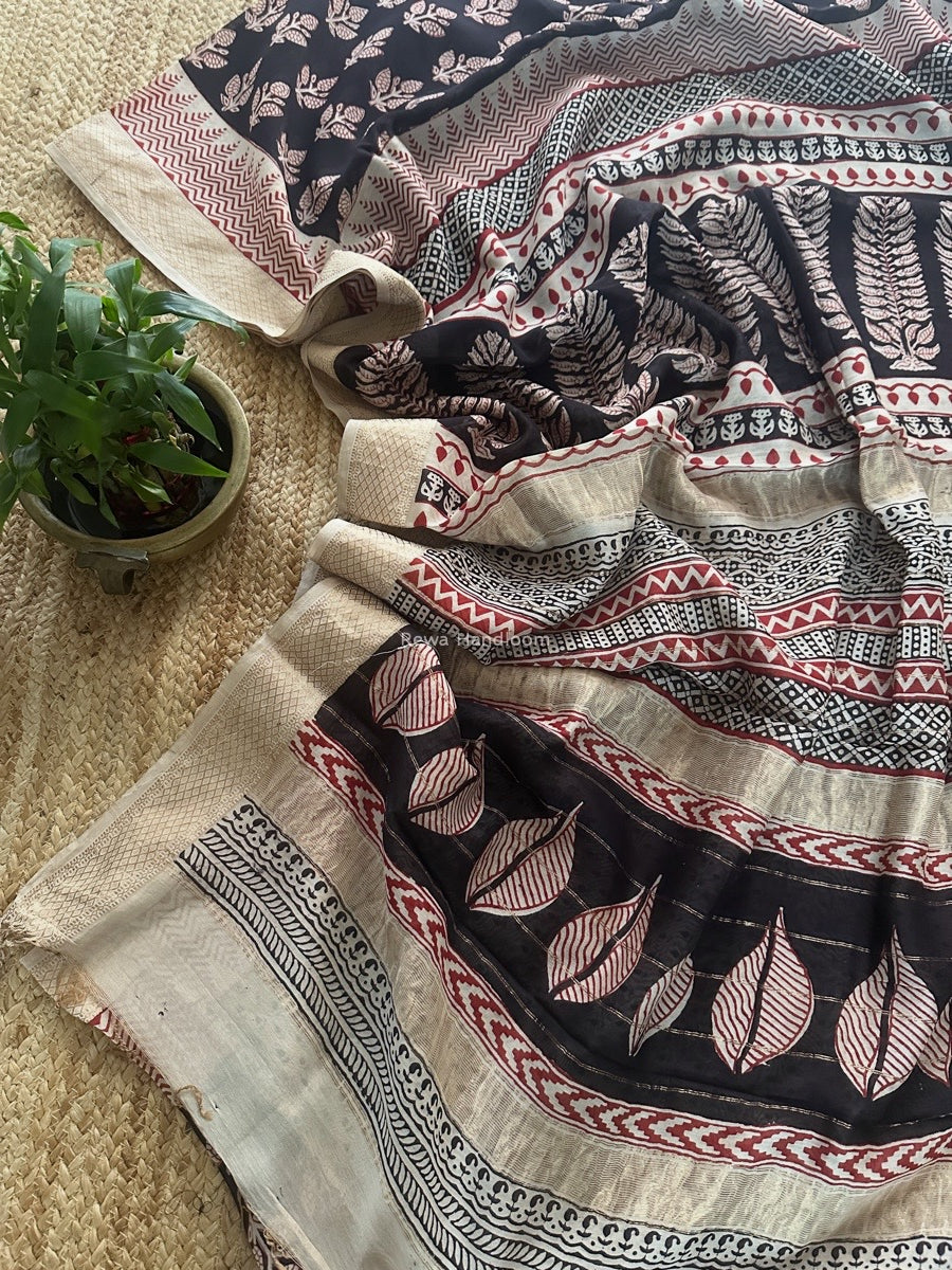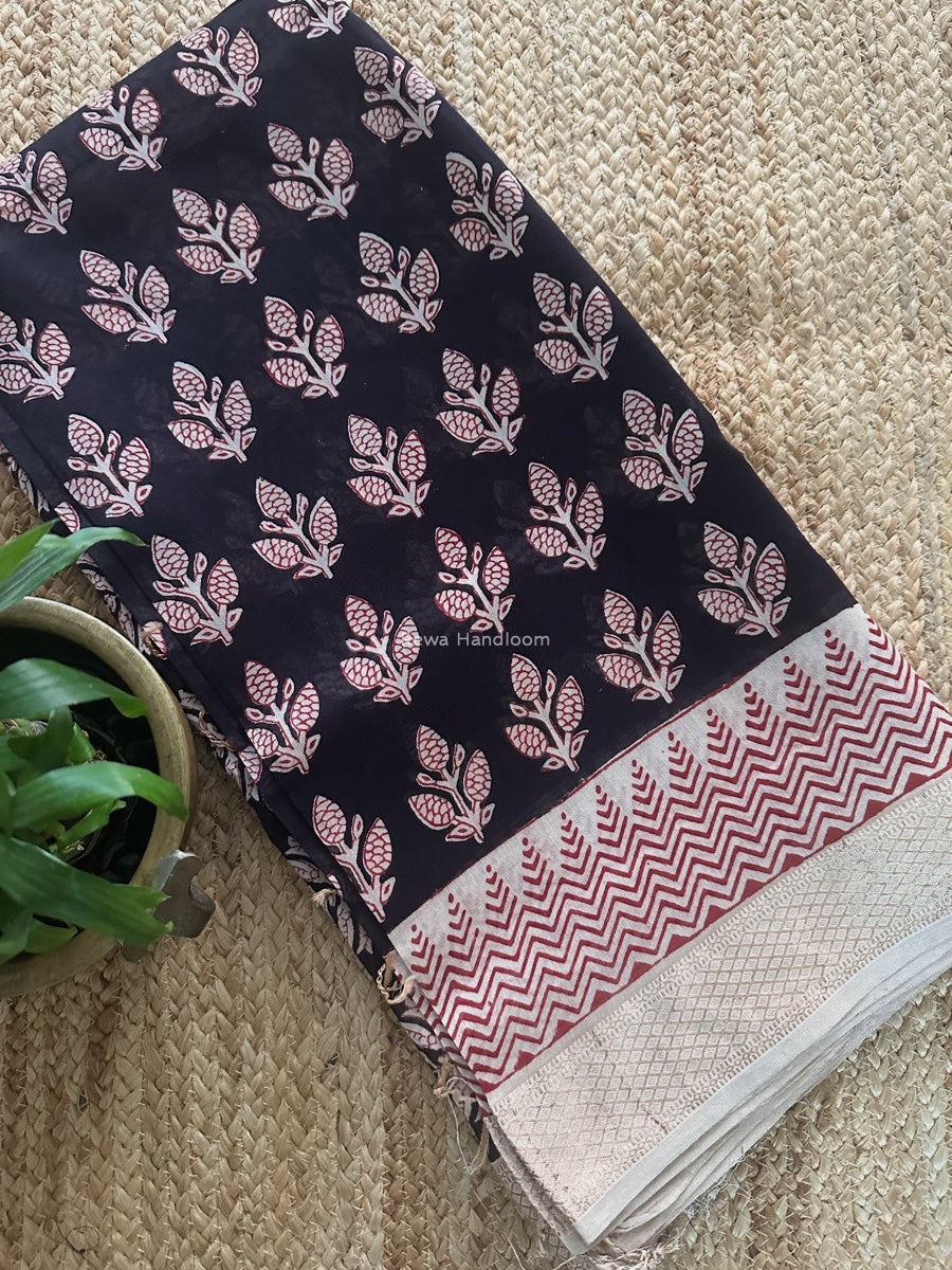 Maheshwari Black Bagh Print Small Border Saree MTBS100