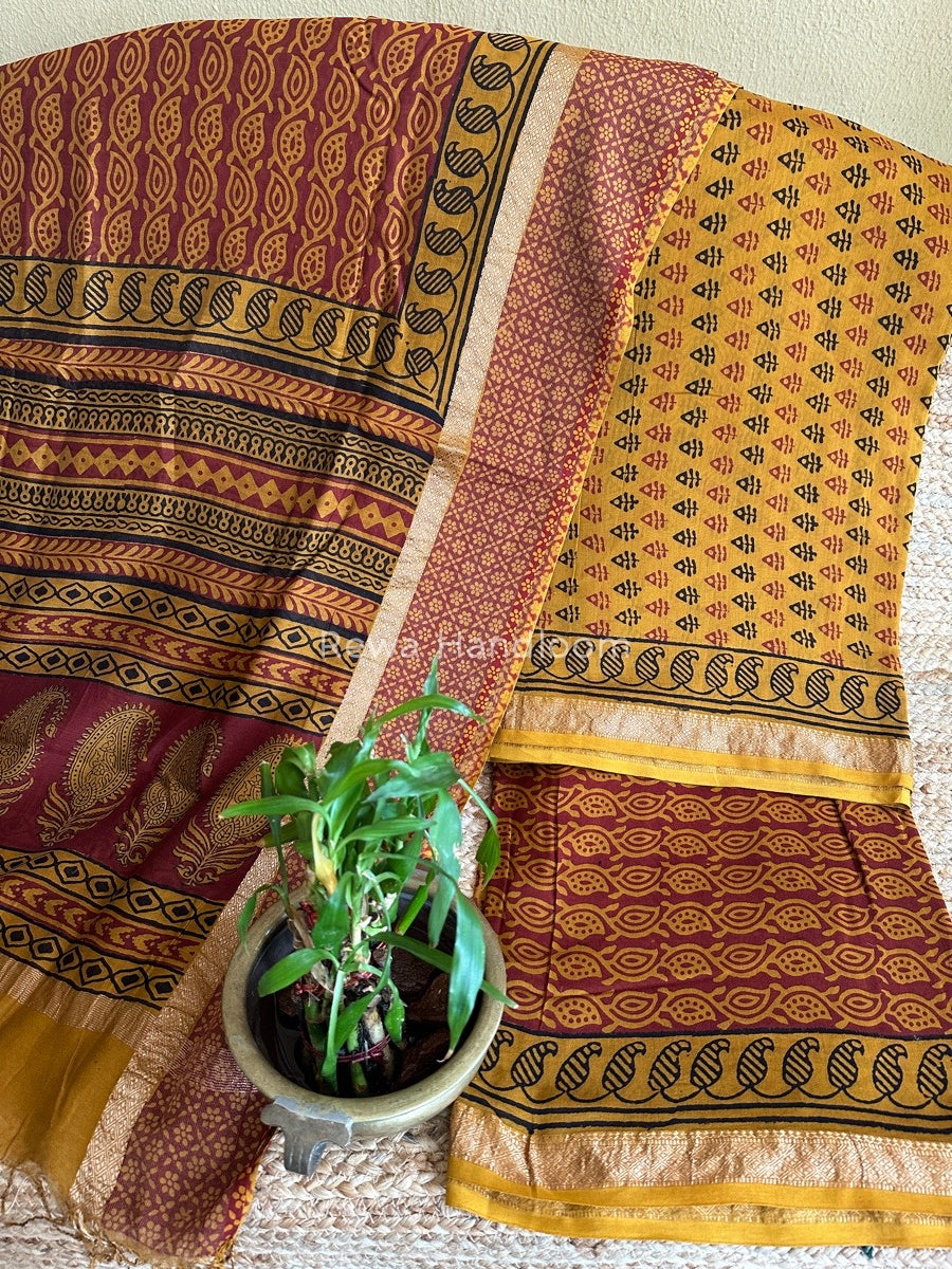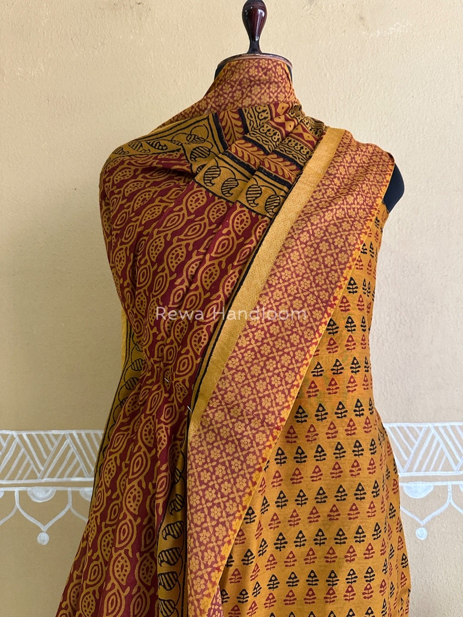 Maheshwari Mustard Yellow Bagh Print Suit BSP0144