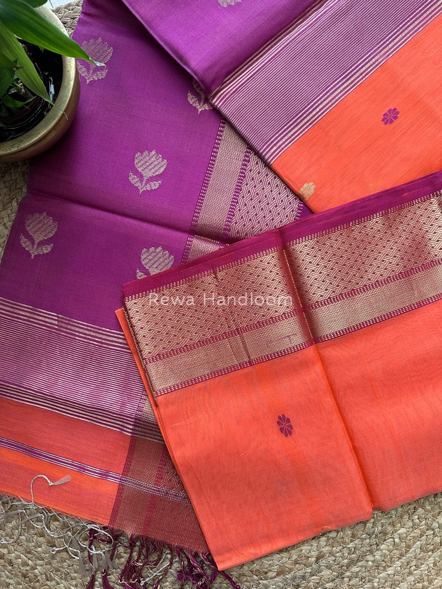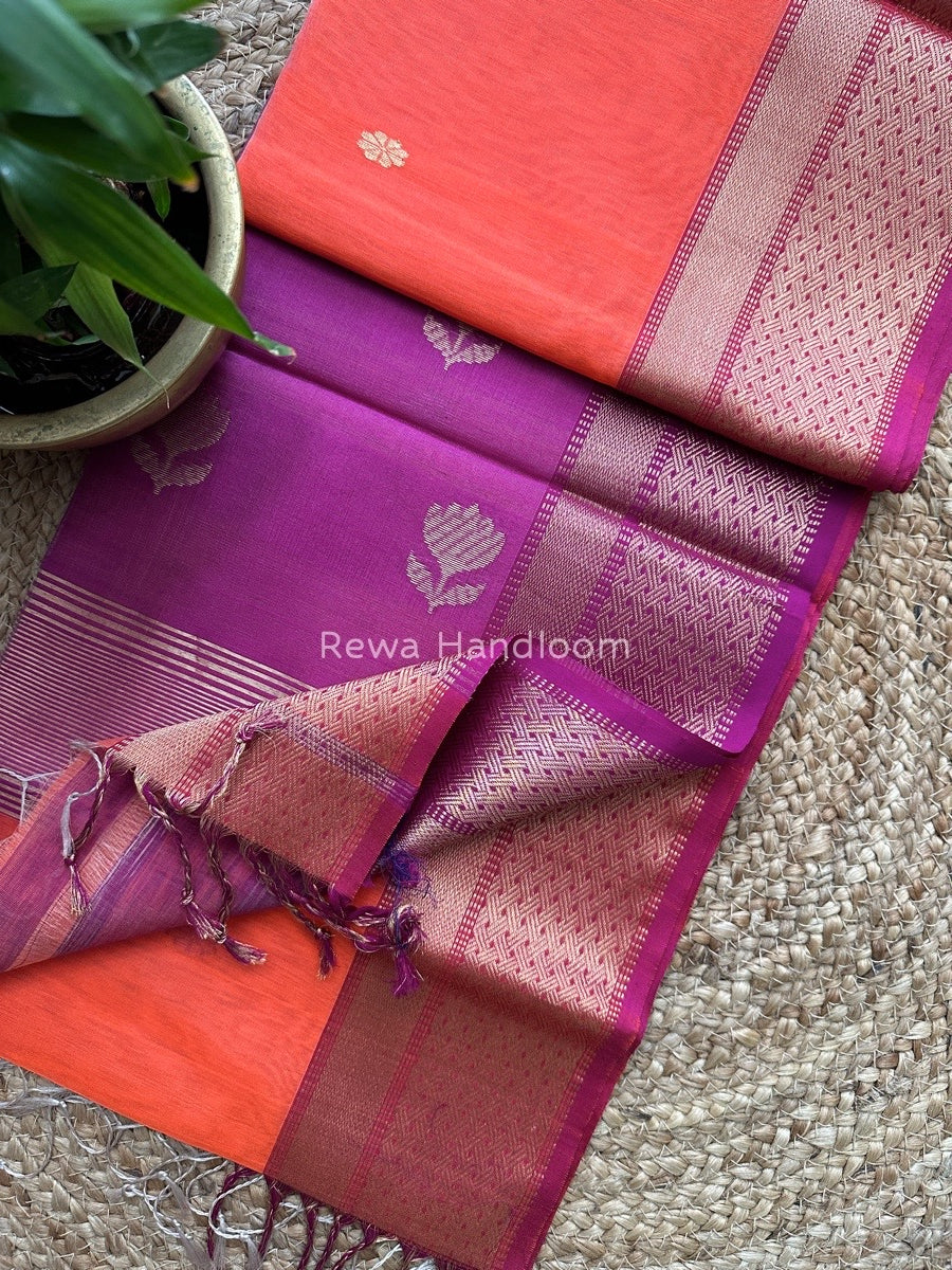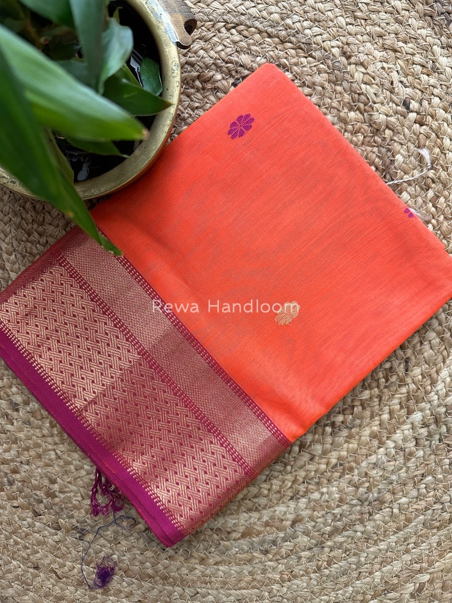 Fuchsia Lotus Butta Zari Border Maheshwari Saree LBS07