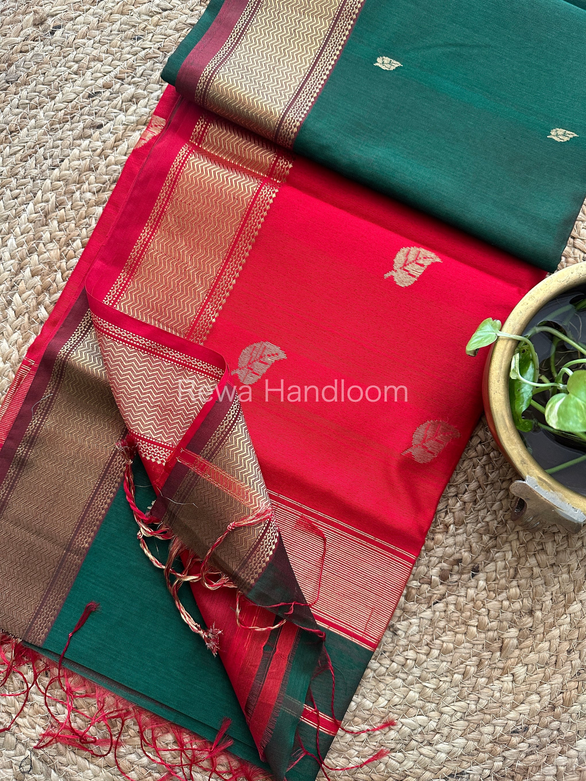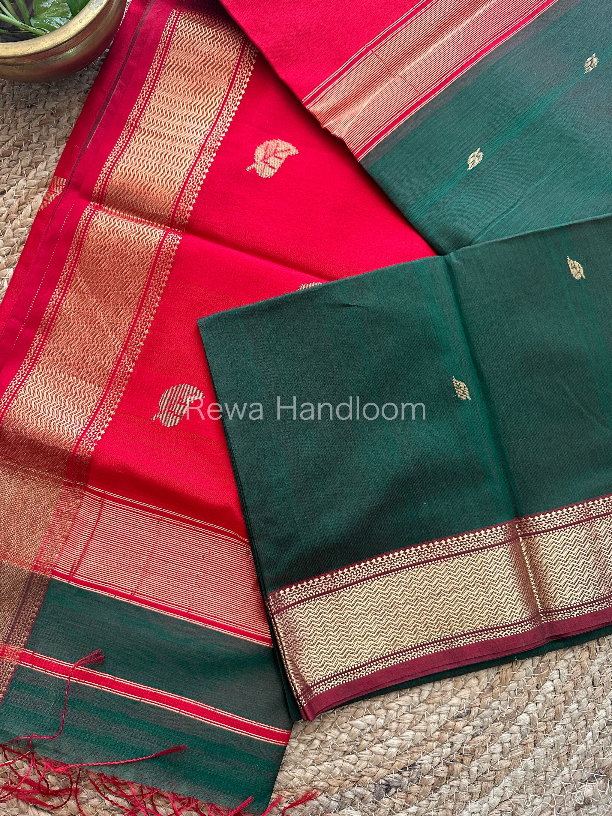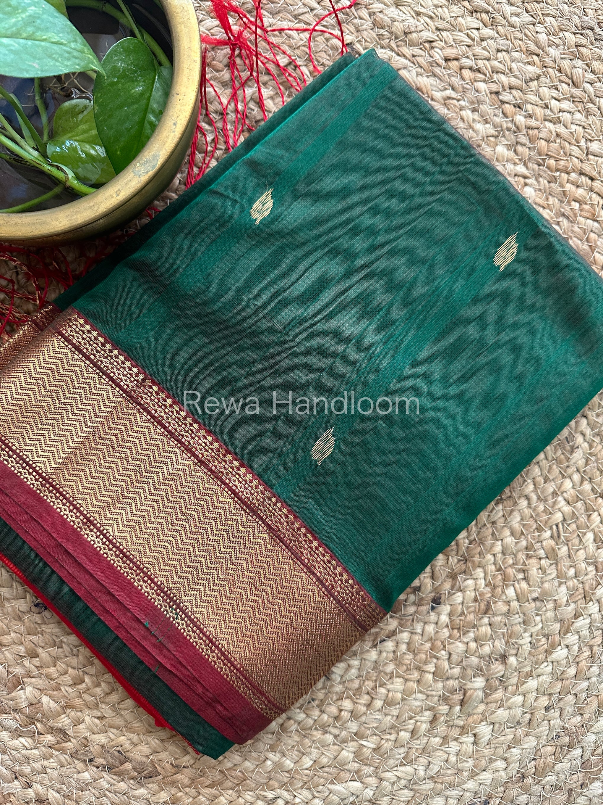 Green Butta Pallu Zari Border Saree ~ Maheshwari Saree-BS02
