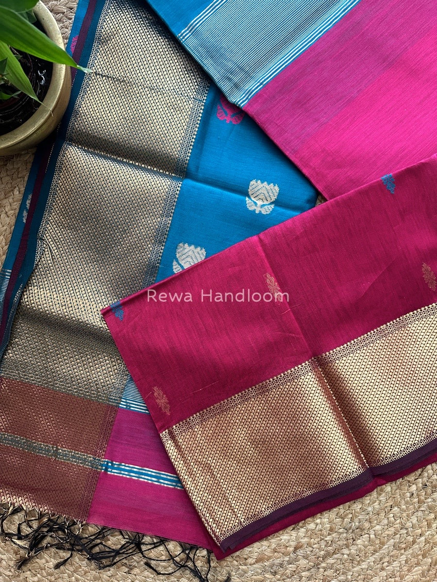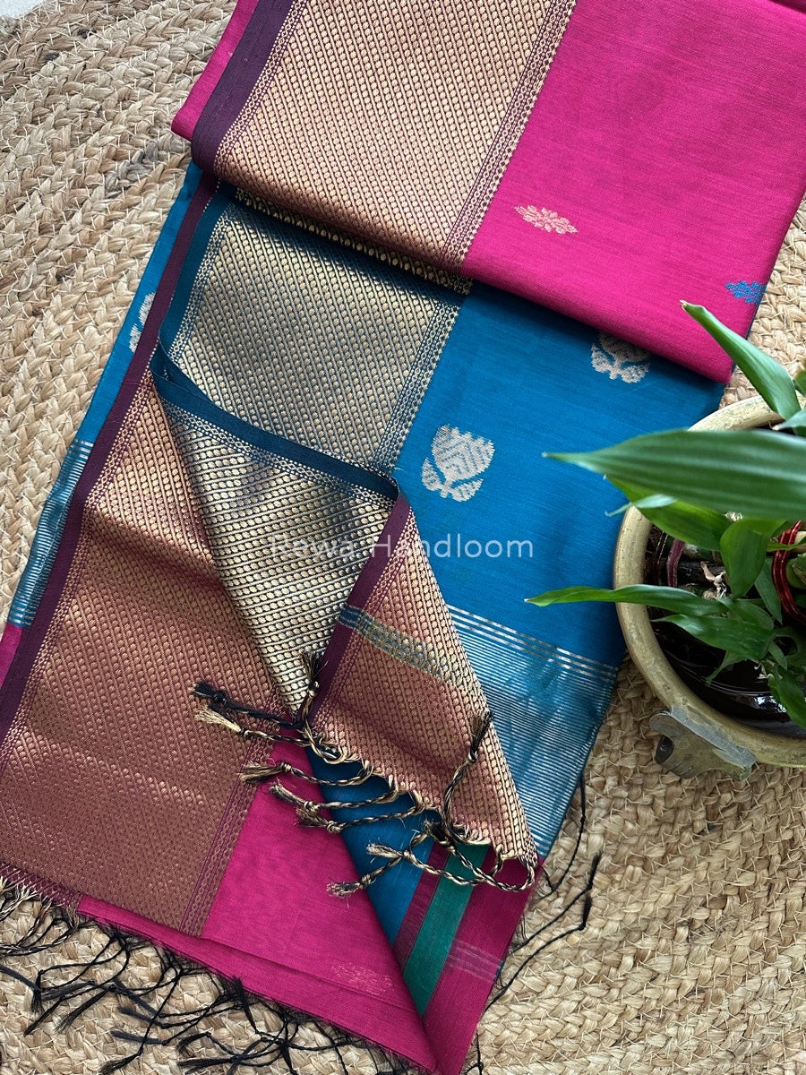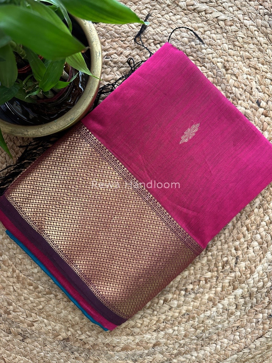 Magenta Lotus Butta Zari Border Maheshwari Saree LBS02
