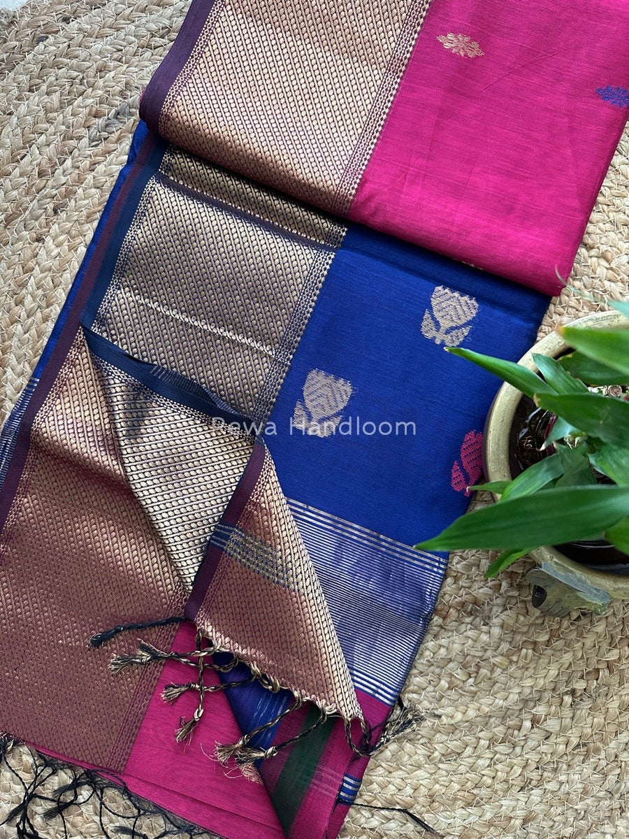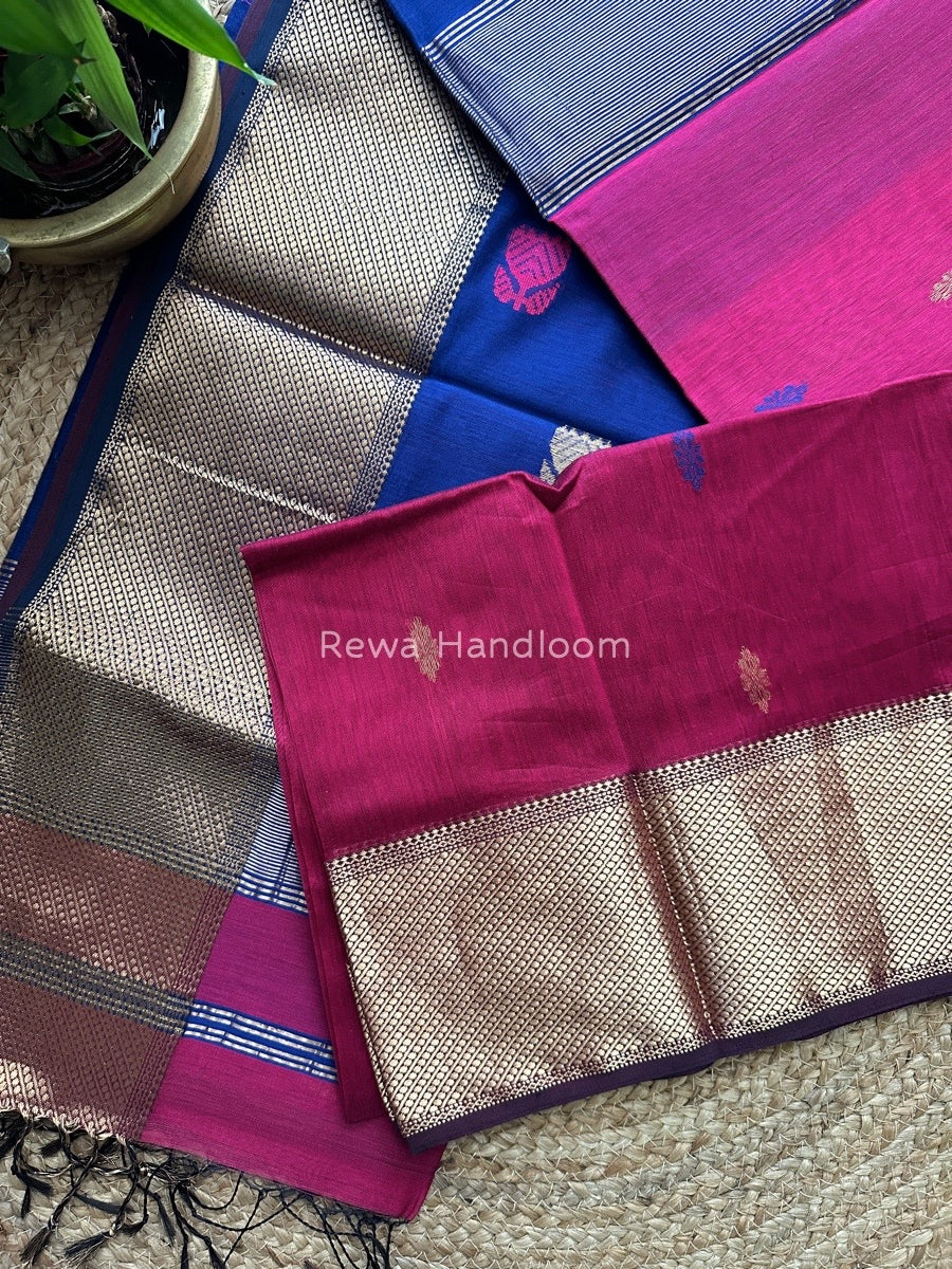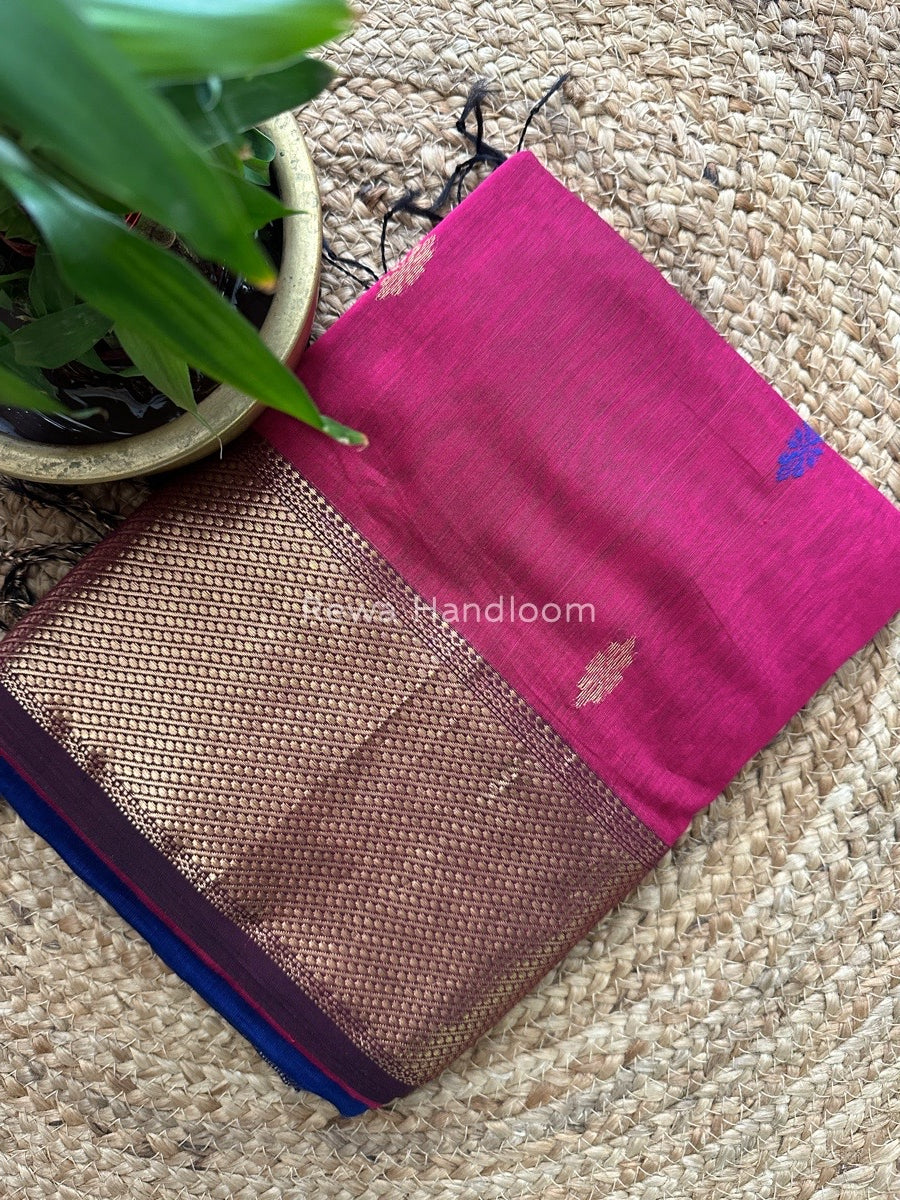Magenta Lotus Butta Zari Border Maheshwari Saree LBS06