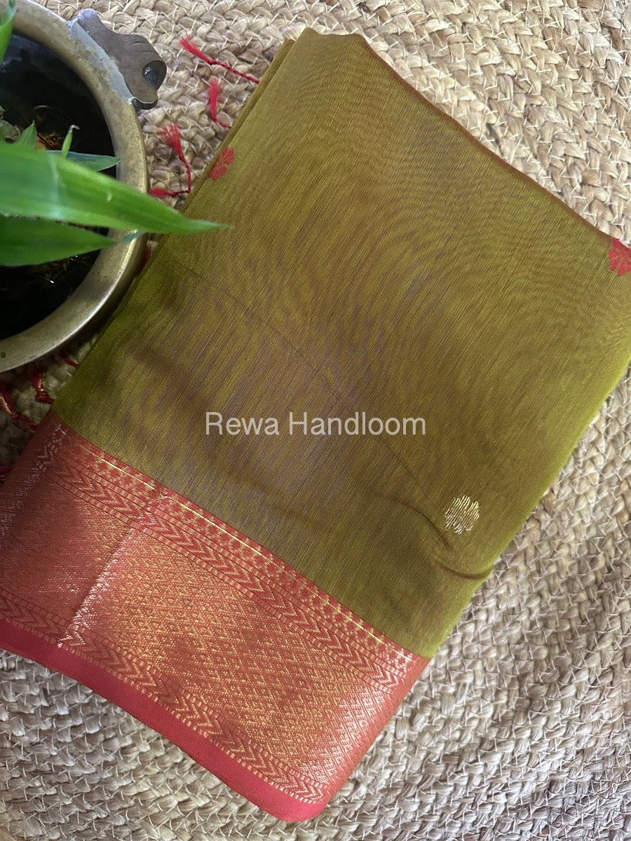 Mehendi Green Butta Zari Border Maheshwari Saree LBS026