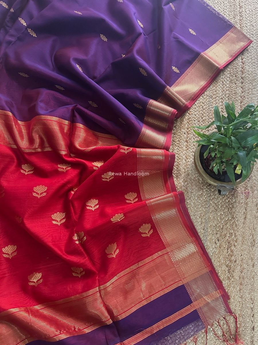 Purple Butta Zari Border Maheshwari Saree LBS042