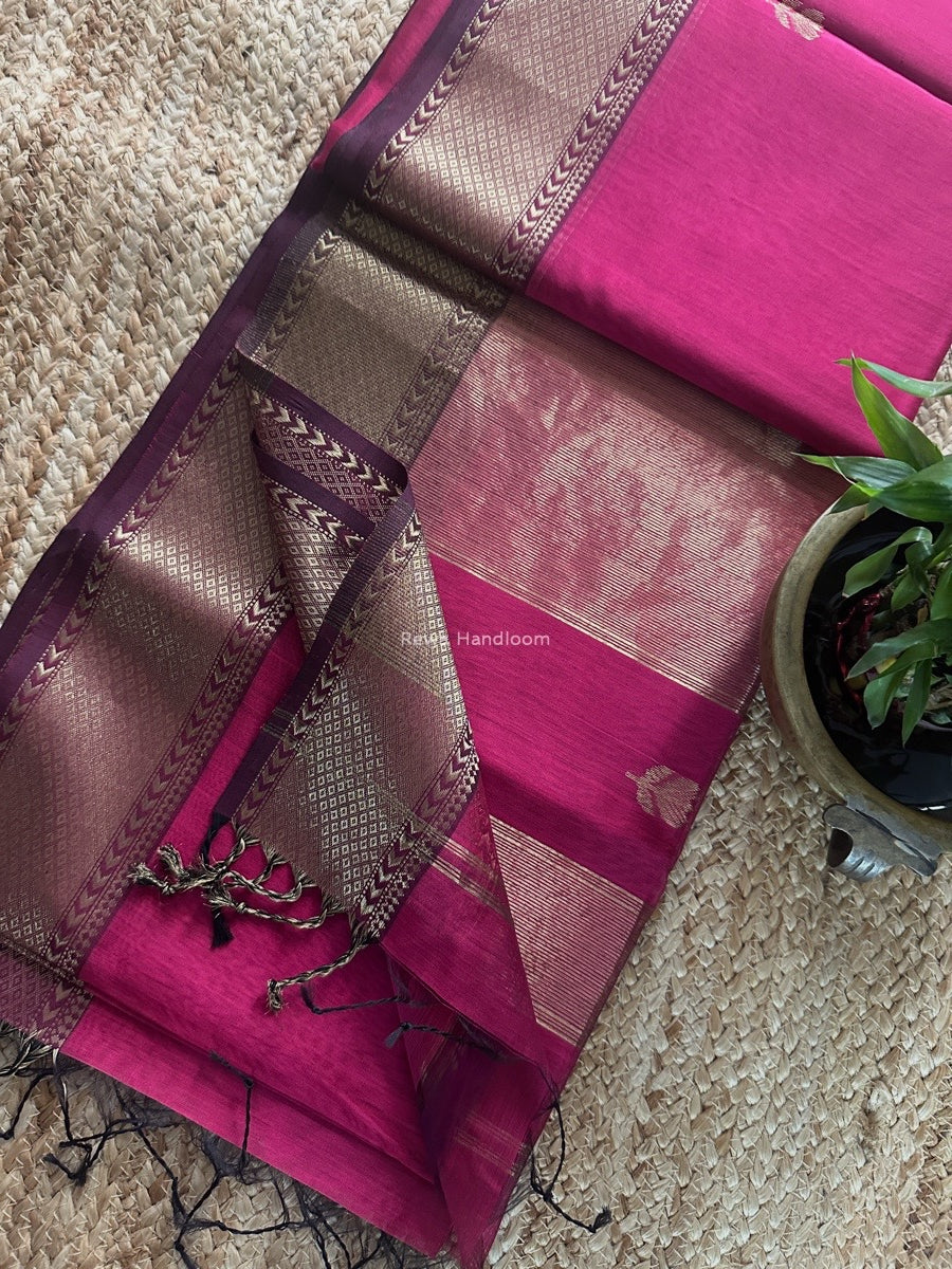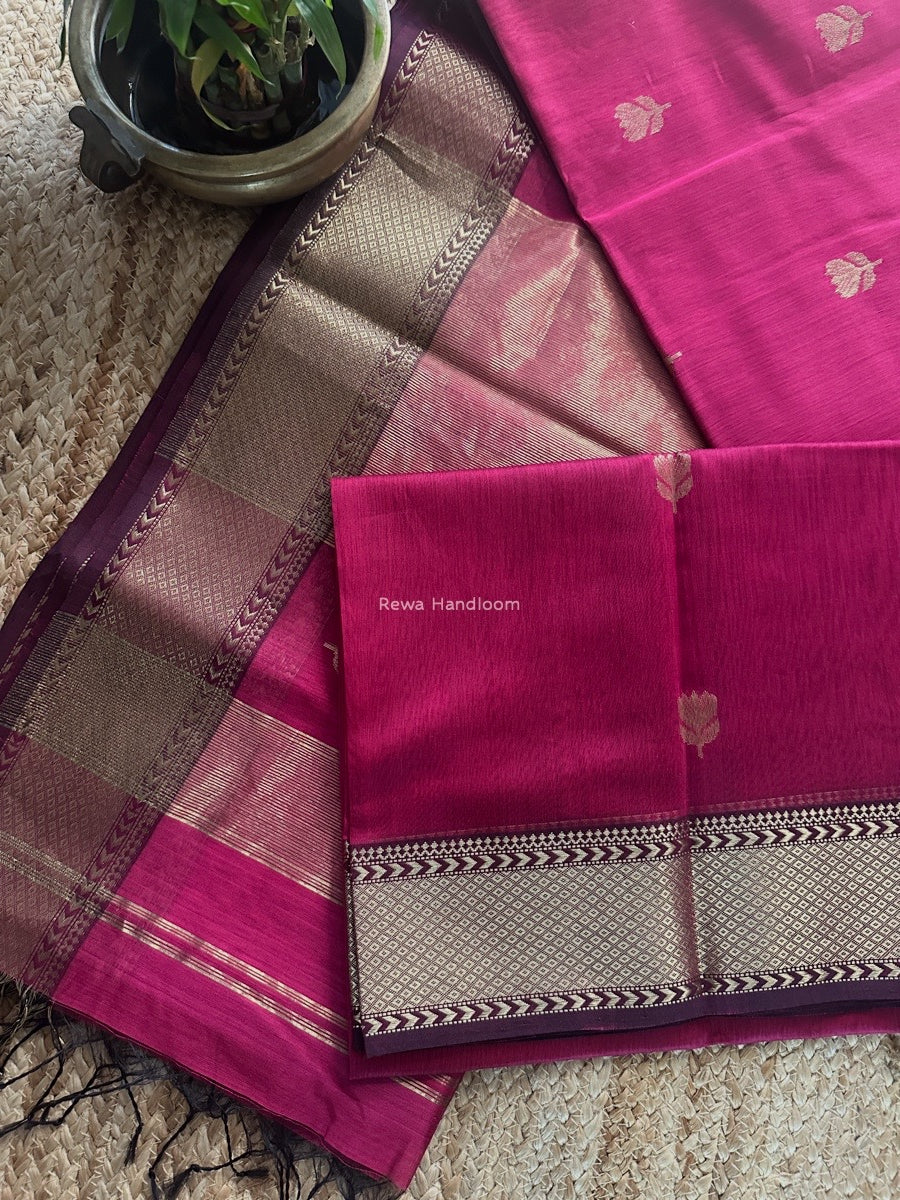 Rani Pink Butta Zari Border Maheshwari Saree LLBS010