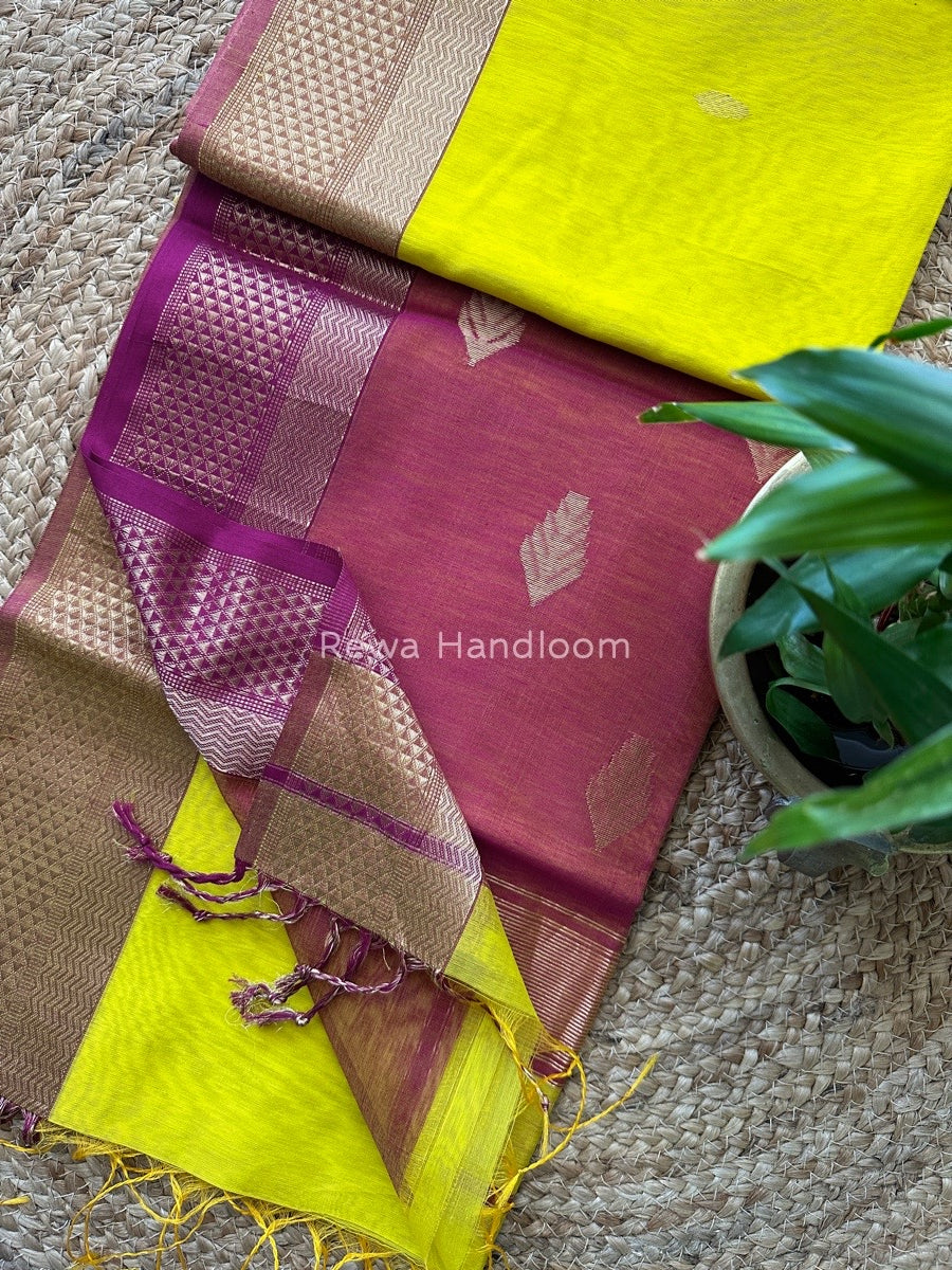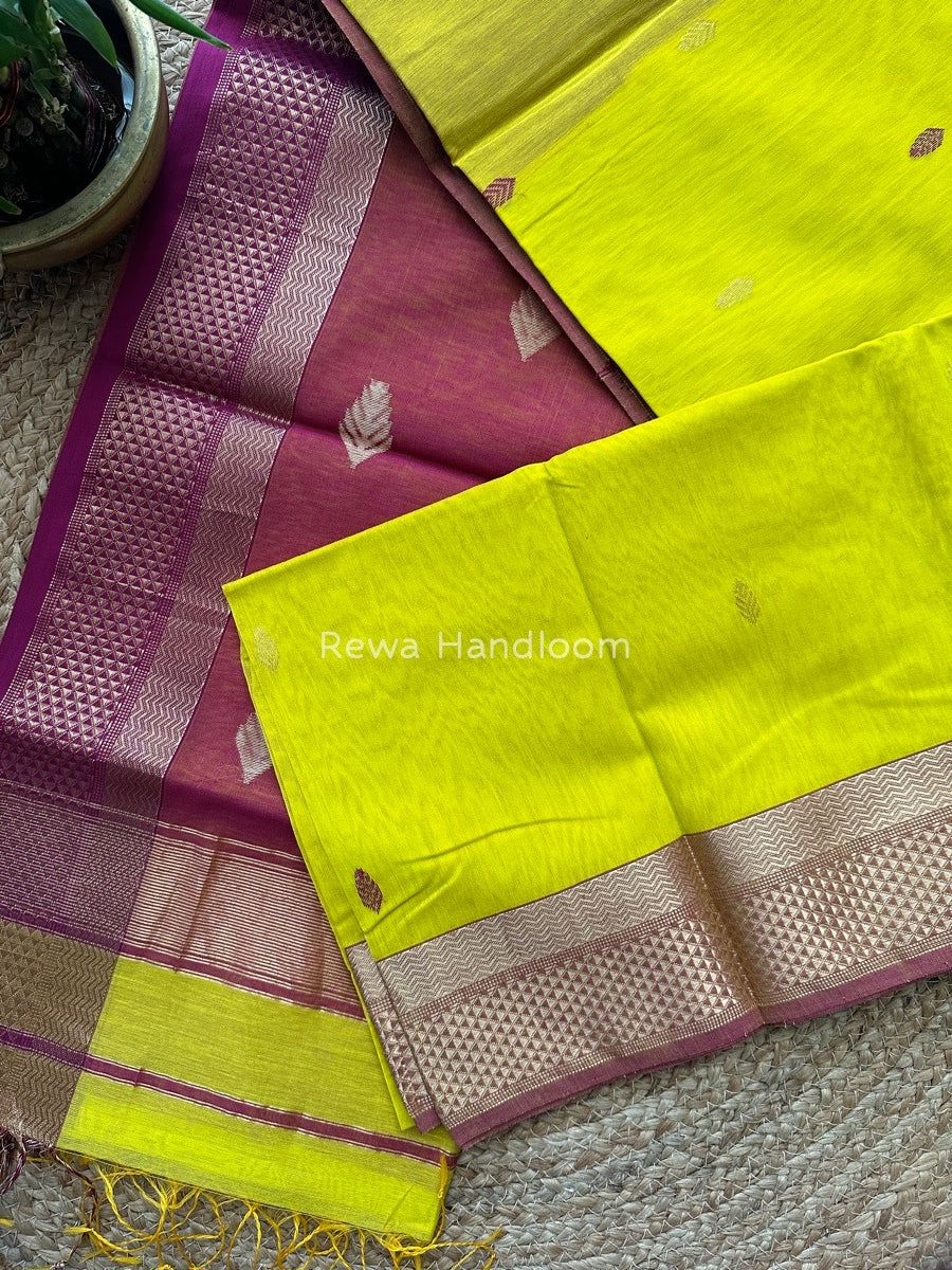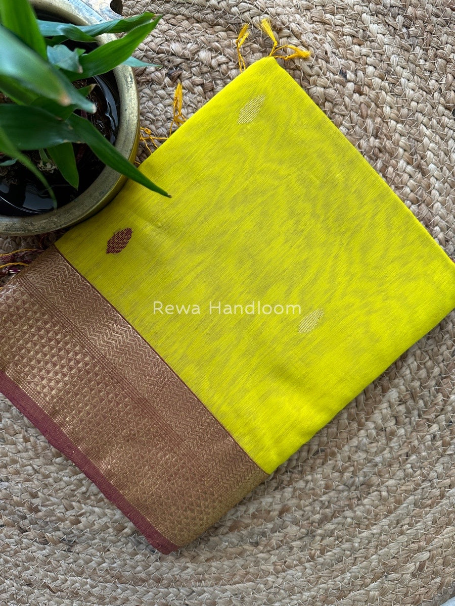 Yellow Butta Zari Border Maheshwari Saree LBS014
