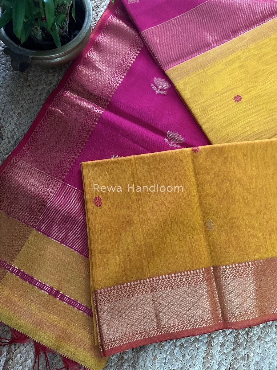 Yellow Butta Zari Border Maheshwari Saree LBS036