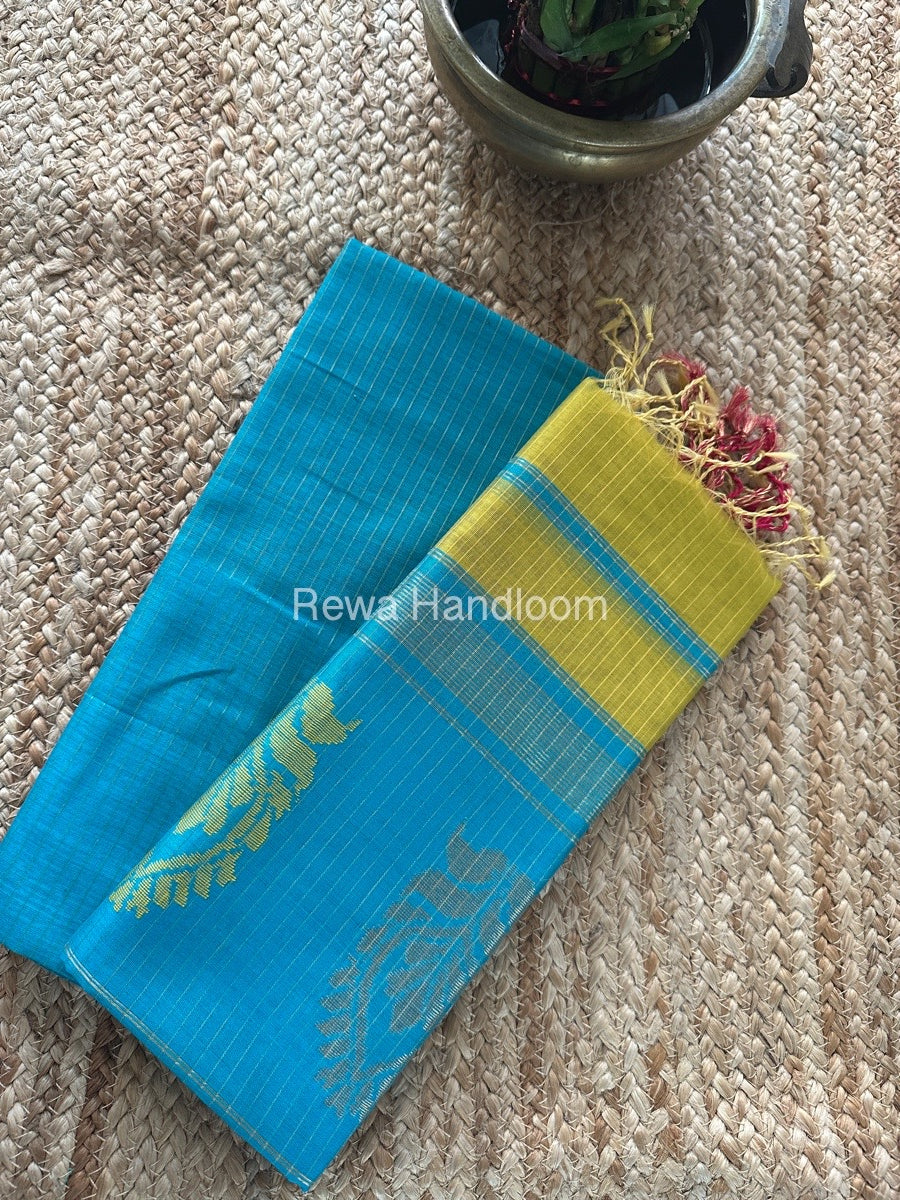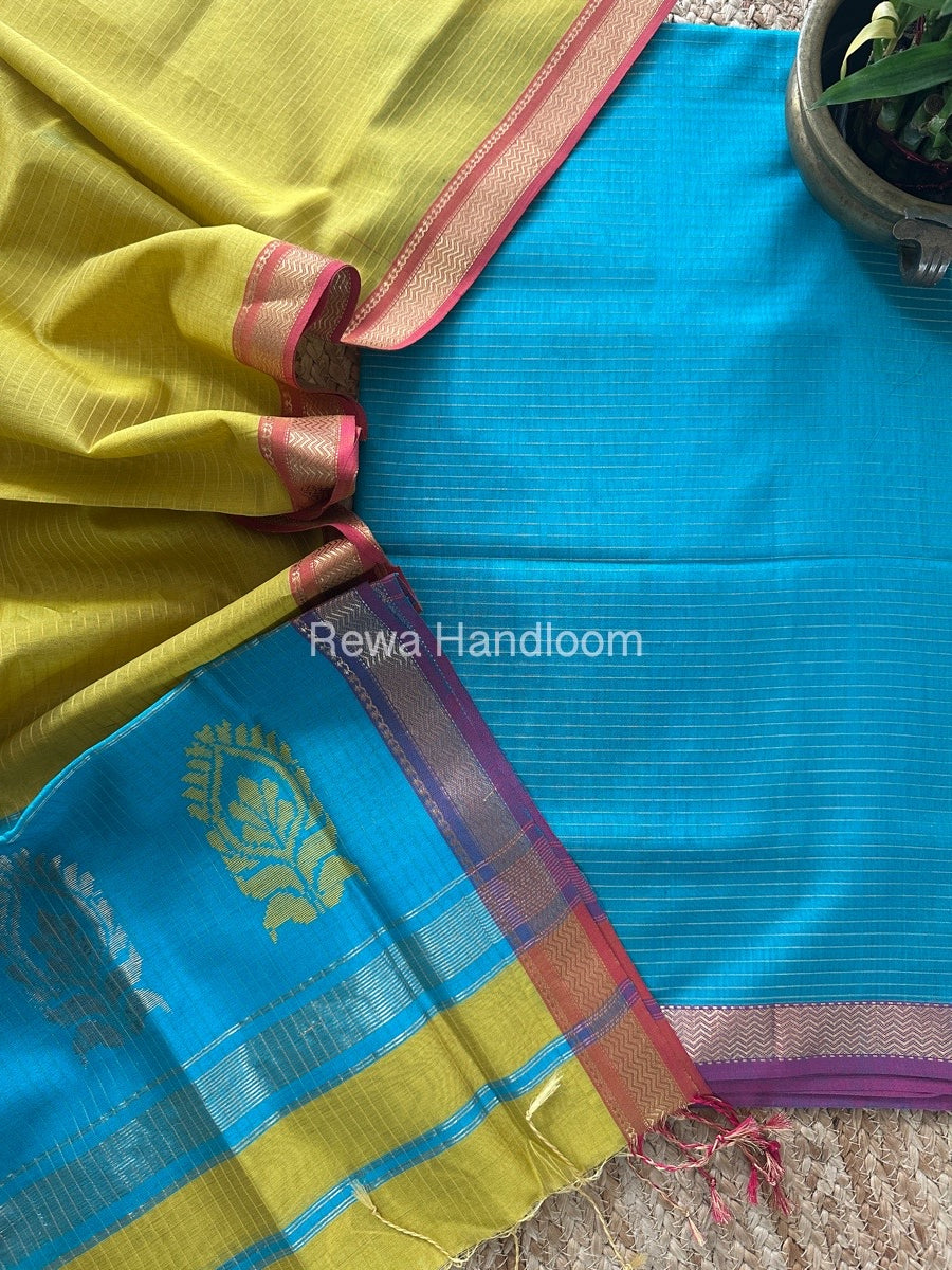 Maheshwari Blue-Mustard Yellow Motifs Top-Dupatta Set MS0196