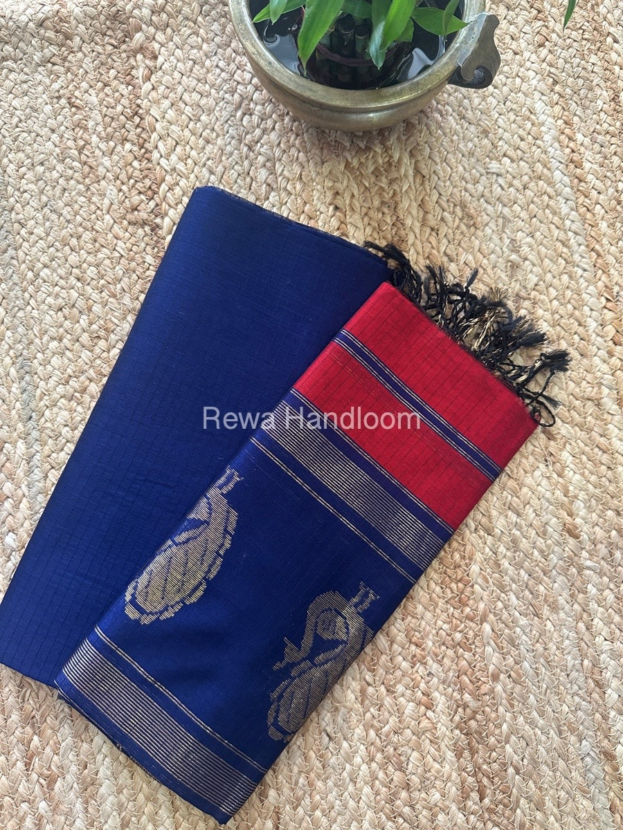 Maheshwari Blue-Red Motifs Top-Dupatta Set MS0134