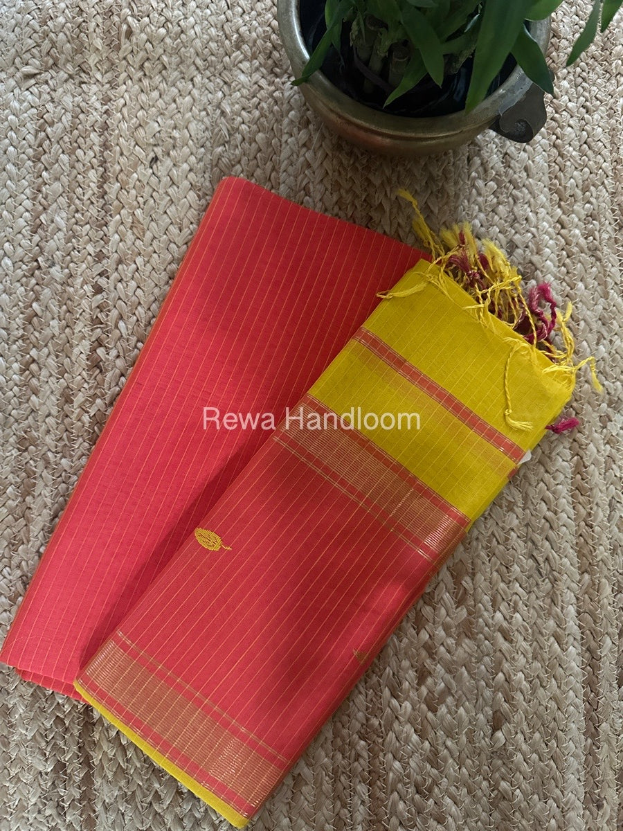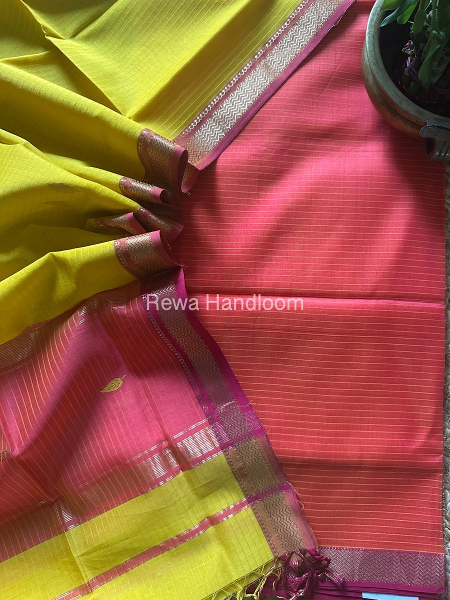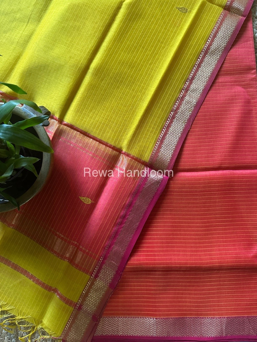 Maheshwari Fuchsia-Mustard Yellow Motifs Top-Dupatta Set PST097