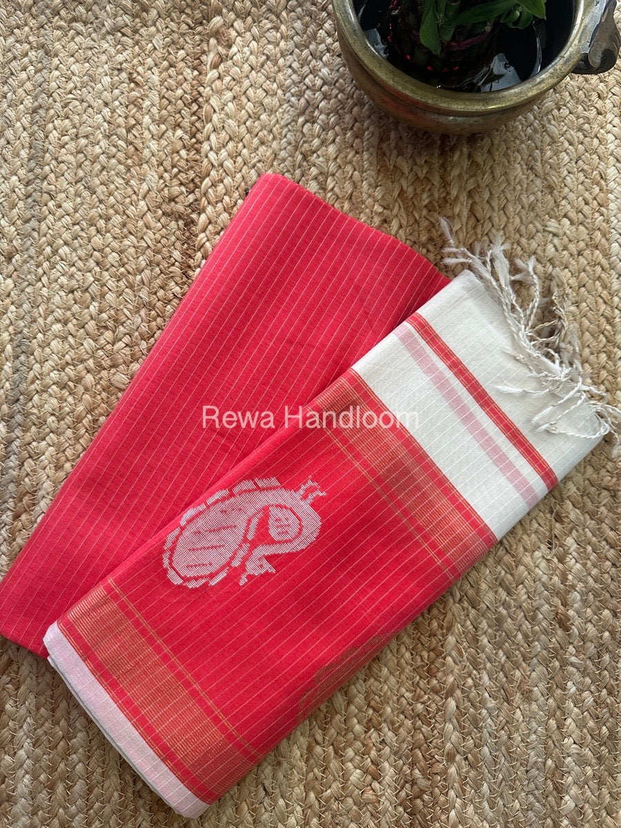 Maheshwari Fuchsia Pink-White Motifs Top-Dupatta Set MS031