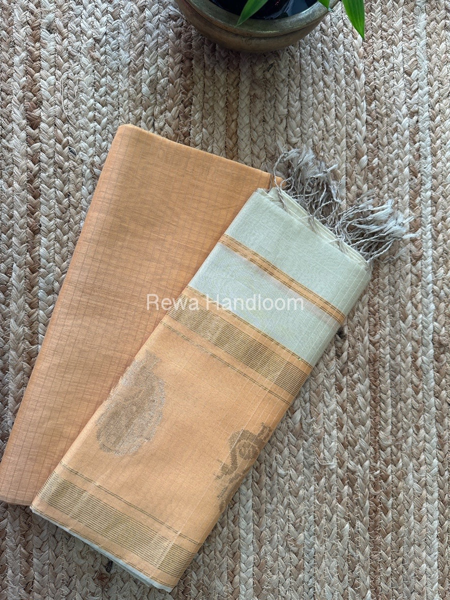 Maheshwari Light Peach-Beige Motifs Top-Dupatta Set MS012