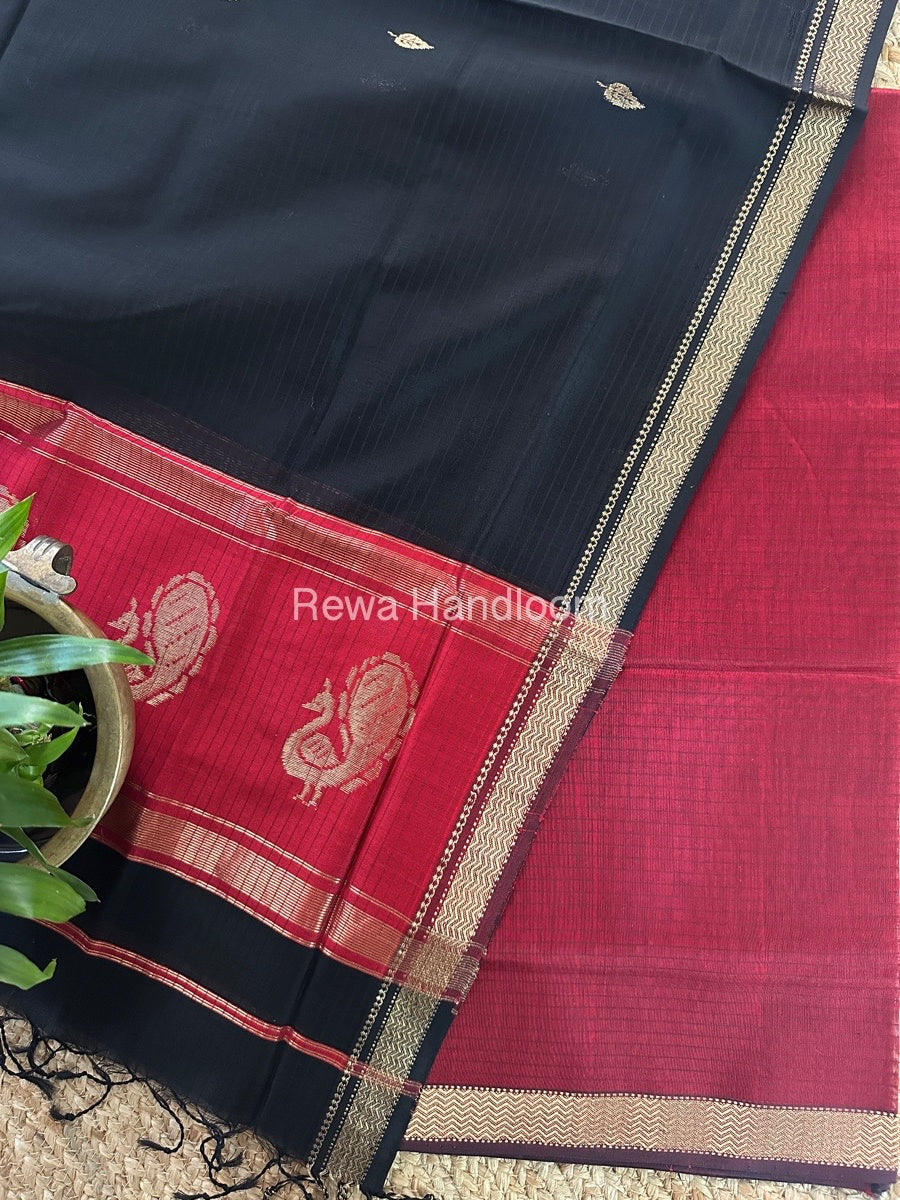 Maheshwari Maroon-Black Motifs Top-Dupatta Set MS060