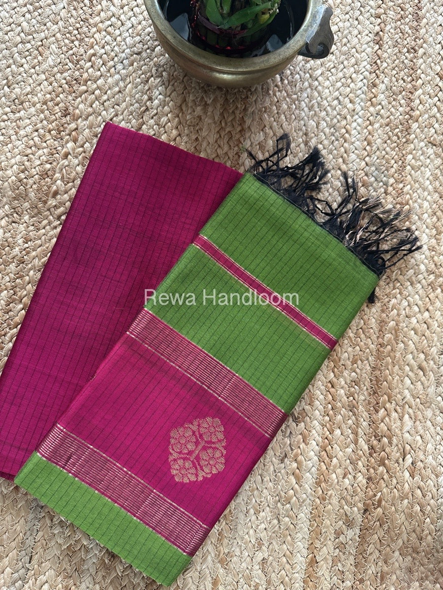 Maheshwari Rani Pink-Mehendi Green Motifs Top-Dupatta Set MS0189