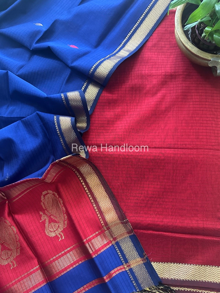 Maheshwari Red-Blue Motifs Top-Dupatta Set MS033