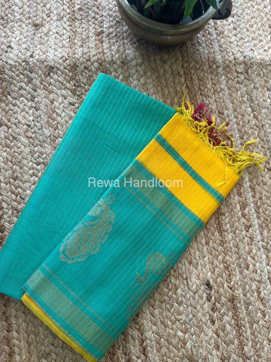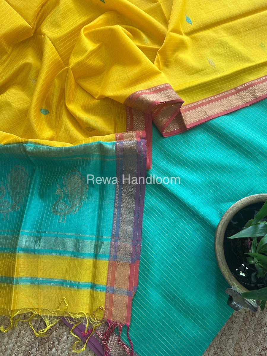 Maheshwari Sea Green-Mango Yellow Motifs Top-Dupatta Set MS055