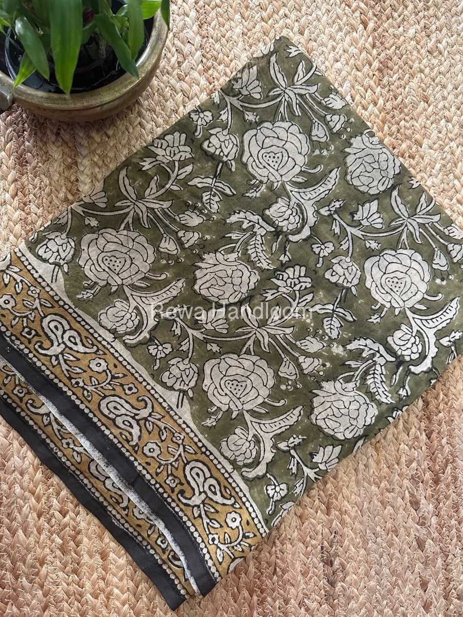 Mehendi Green Dabu Print Silk Top-Dupatta DPSD012