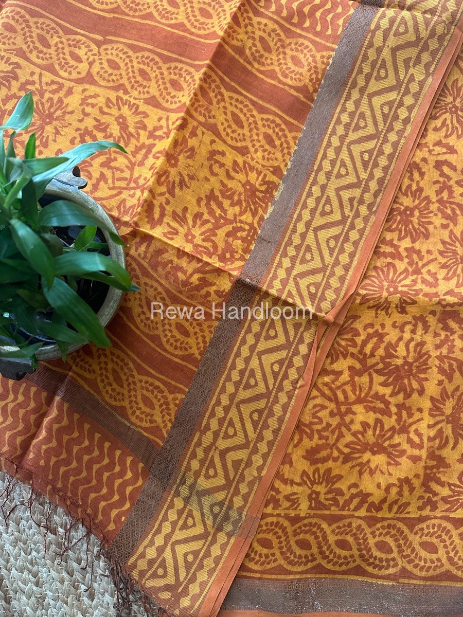 Mustard Yellow Dabu Print Silk Top-Dupatta DPSD03