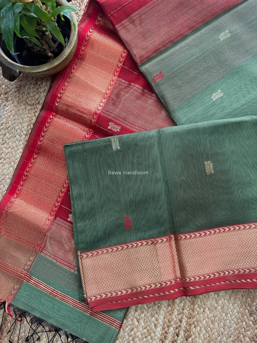 Maheshwari Light Pista Green Flower Butti Saree NPBS08