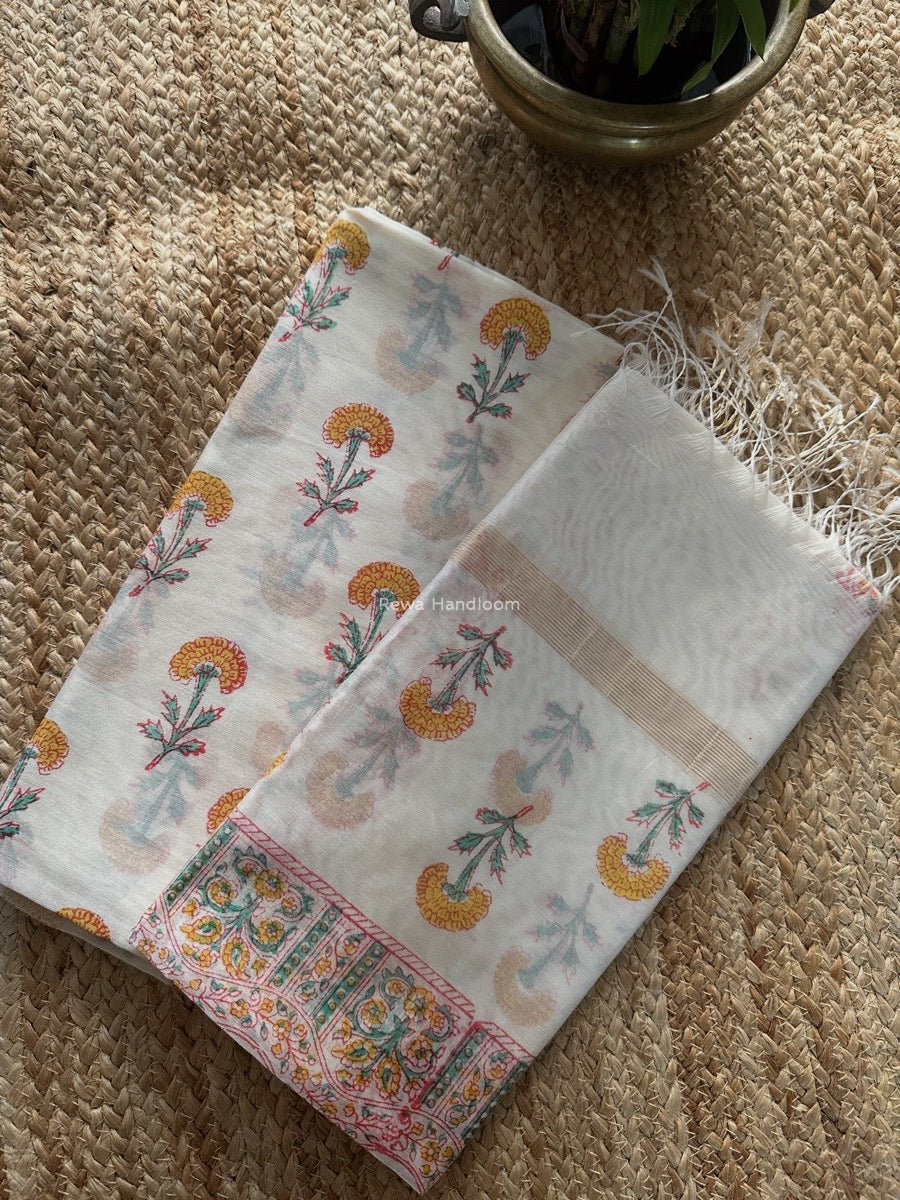Maheshwari White Handblock Print Top-Dupatta HBS0183