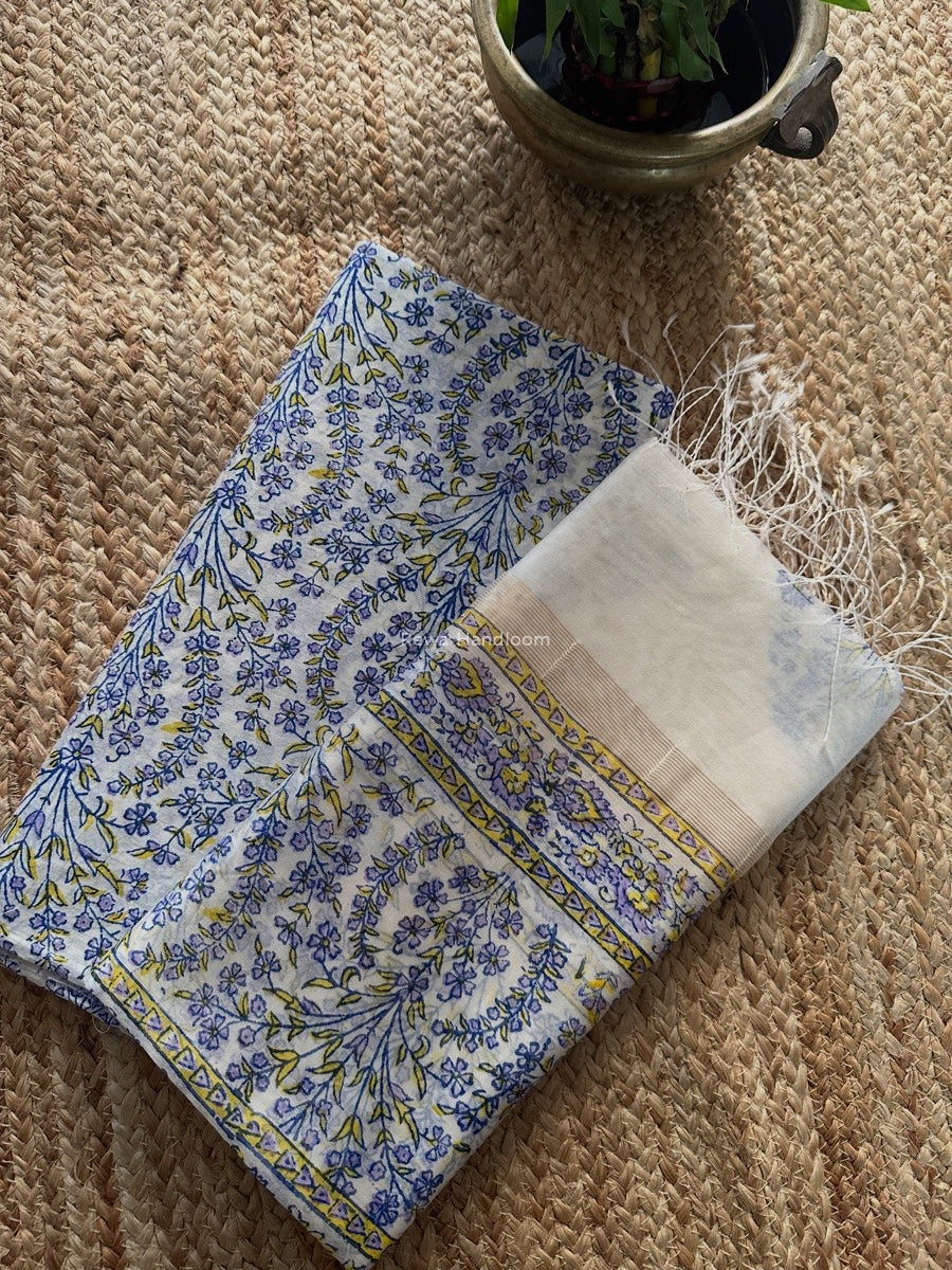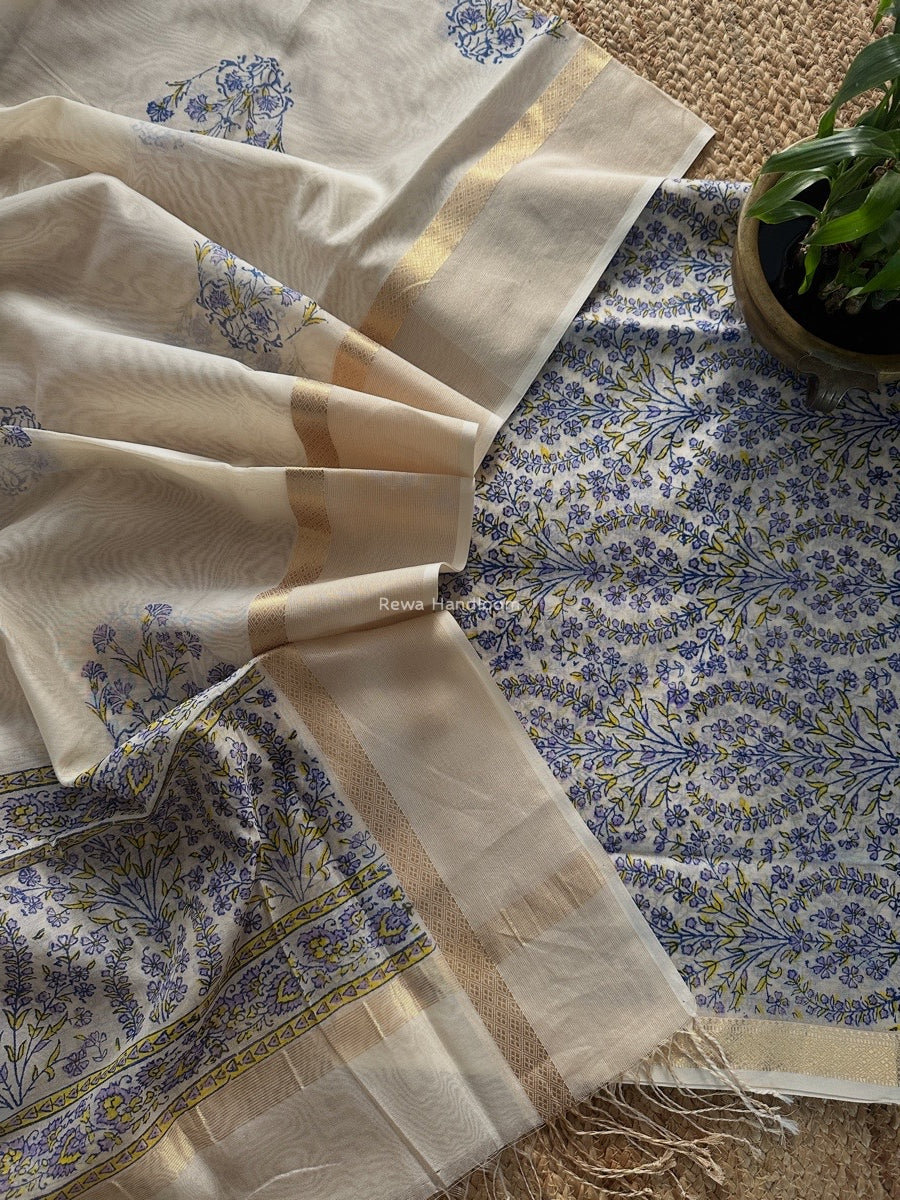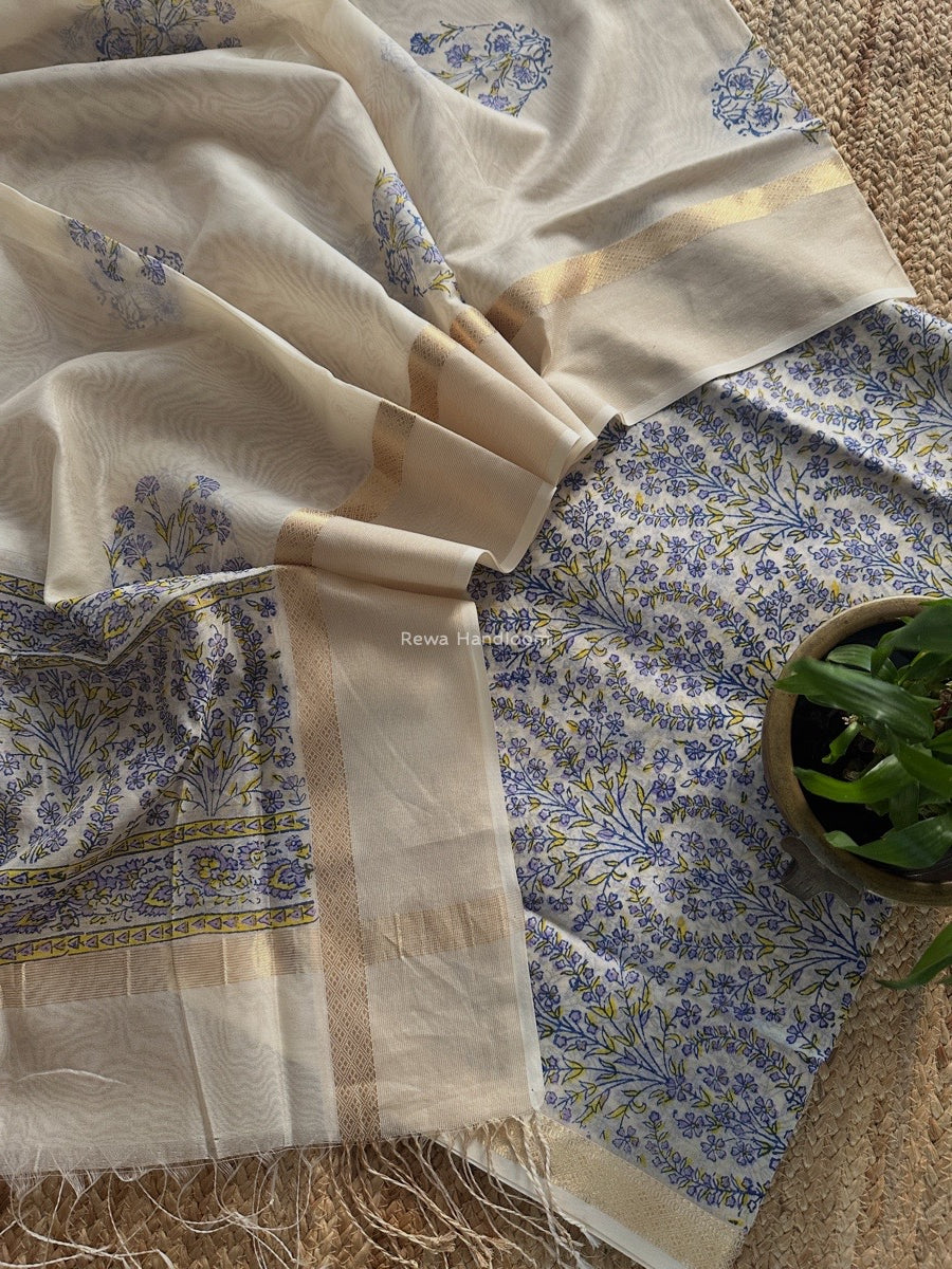Maheshwari White Handblock Print Top-Dupatta HBS0185