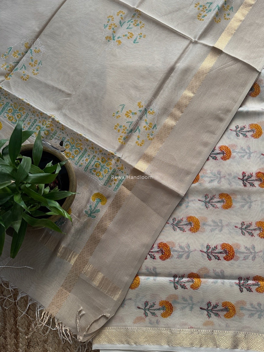 Maheshwari White Handblock Print Top-Dupatta HBS0186