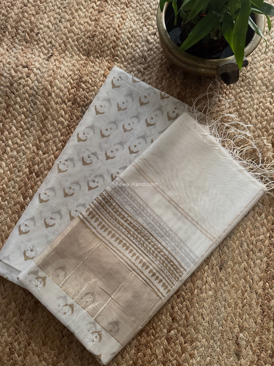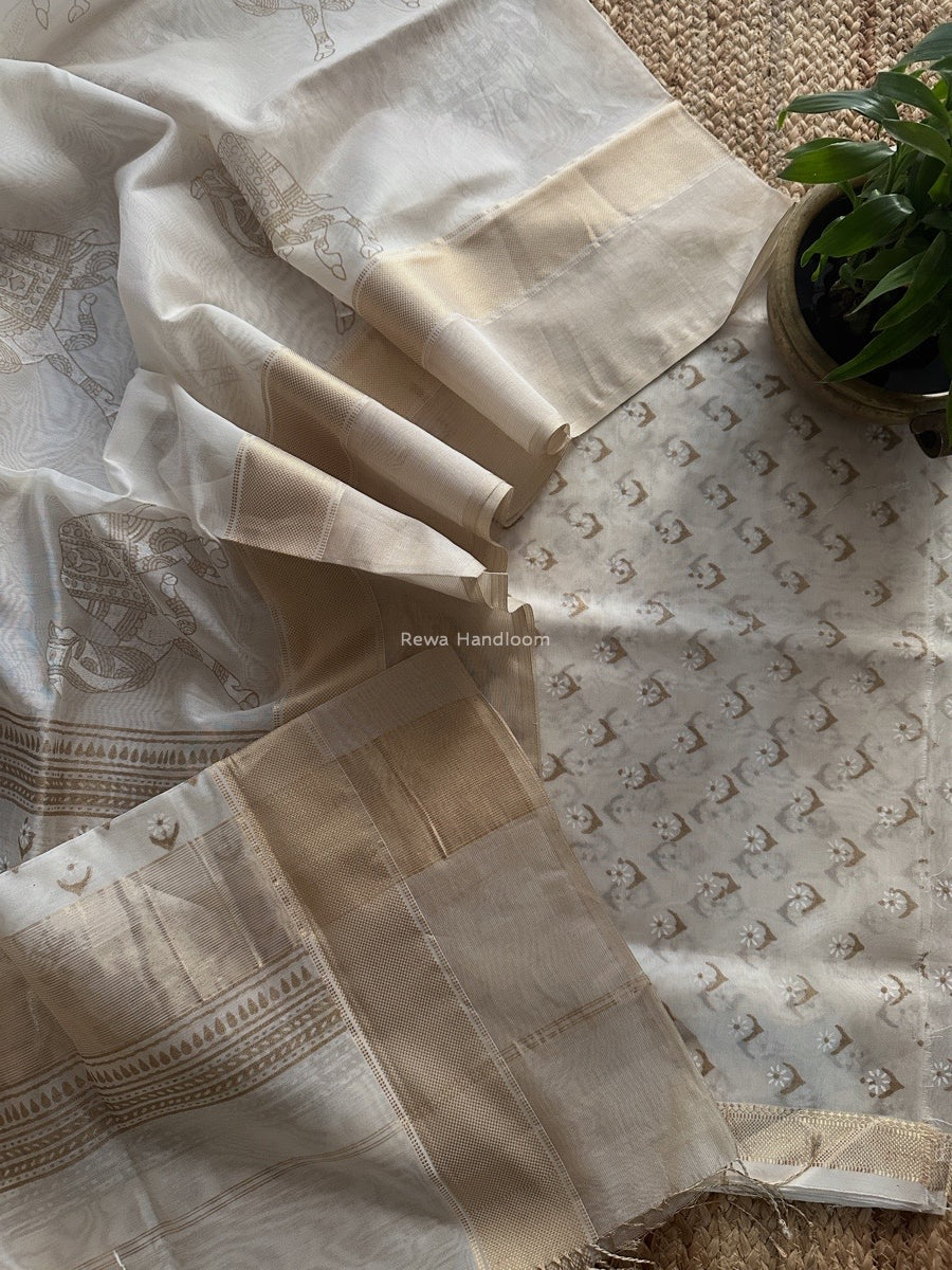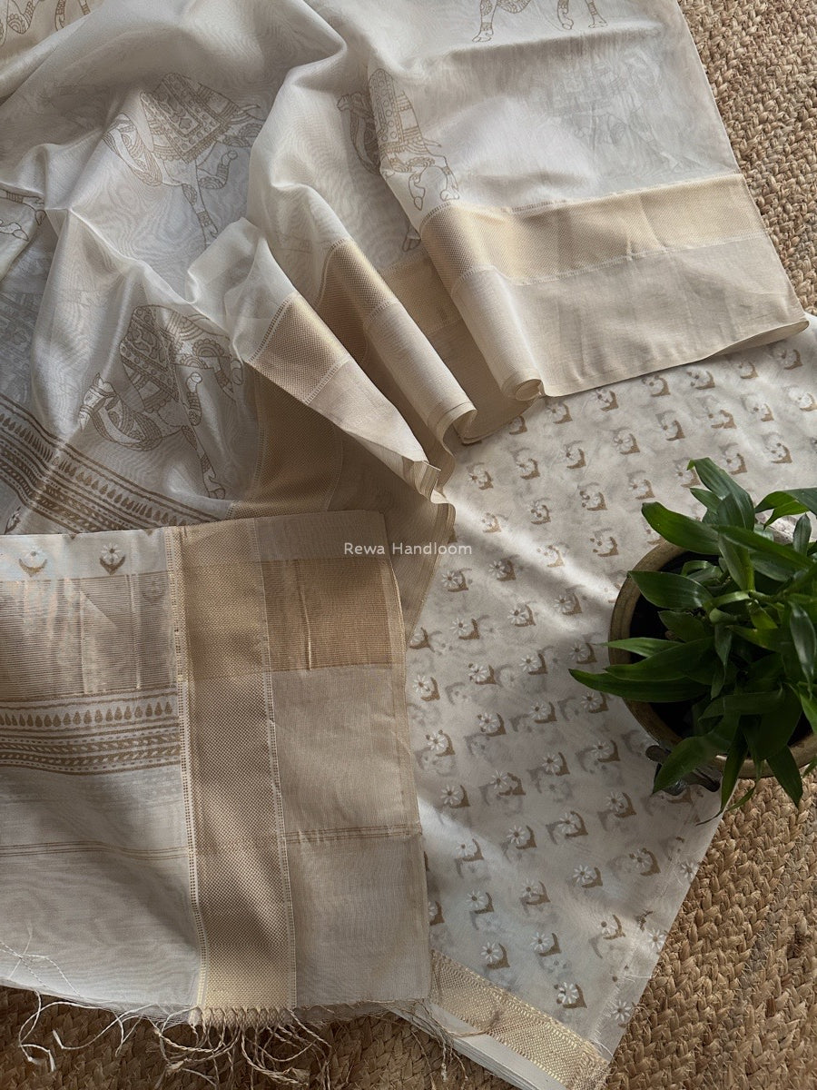 Maheshwari White Handblock Print Top-Dupatta HBS0190