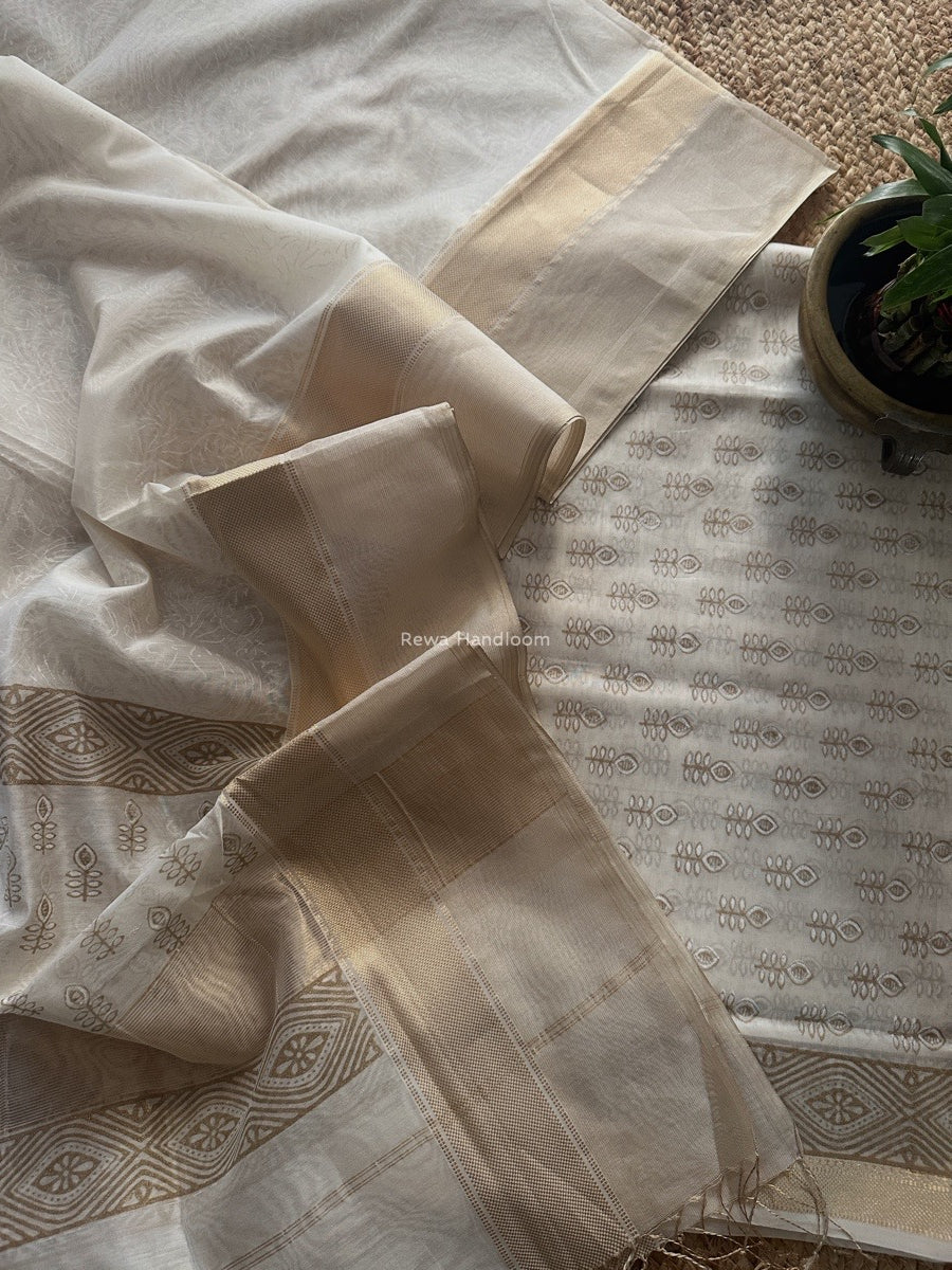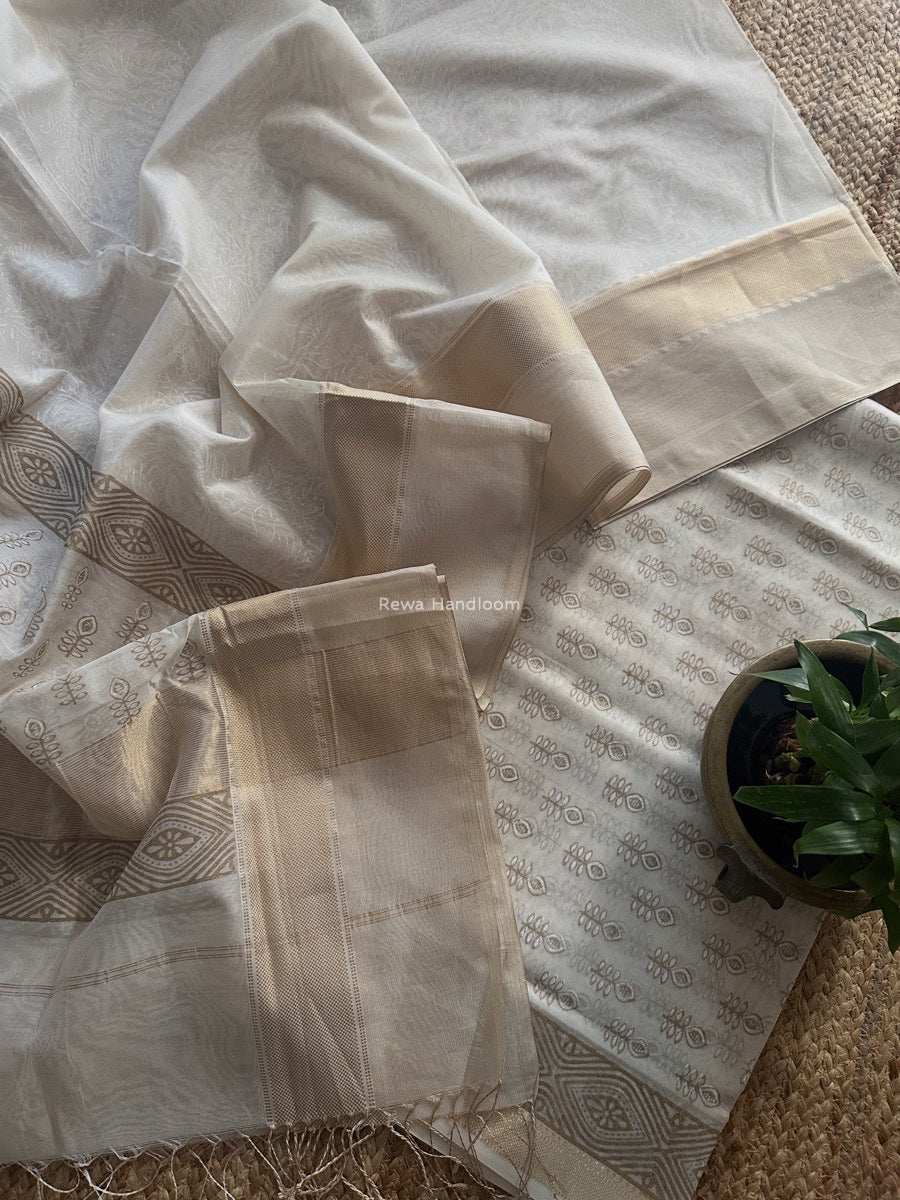 Maheshwari White Handblock Print Top-Dupatta HBS0192