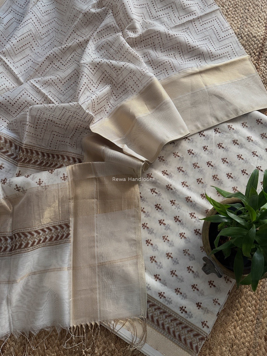 Maheshwari White Handblock Print Top-Dupatta HBS0199