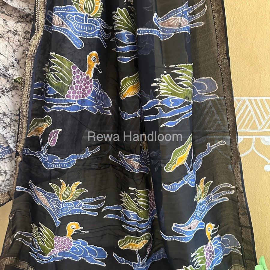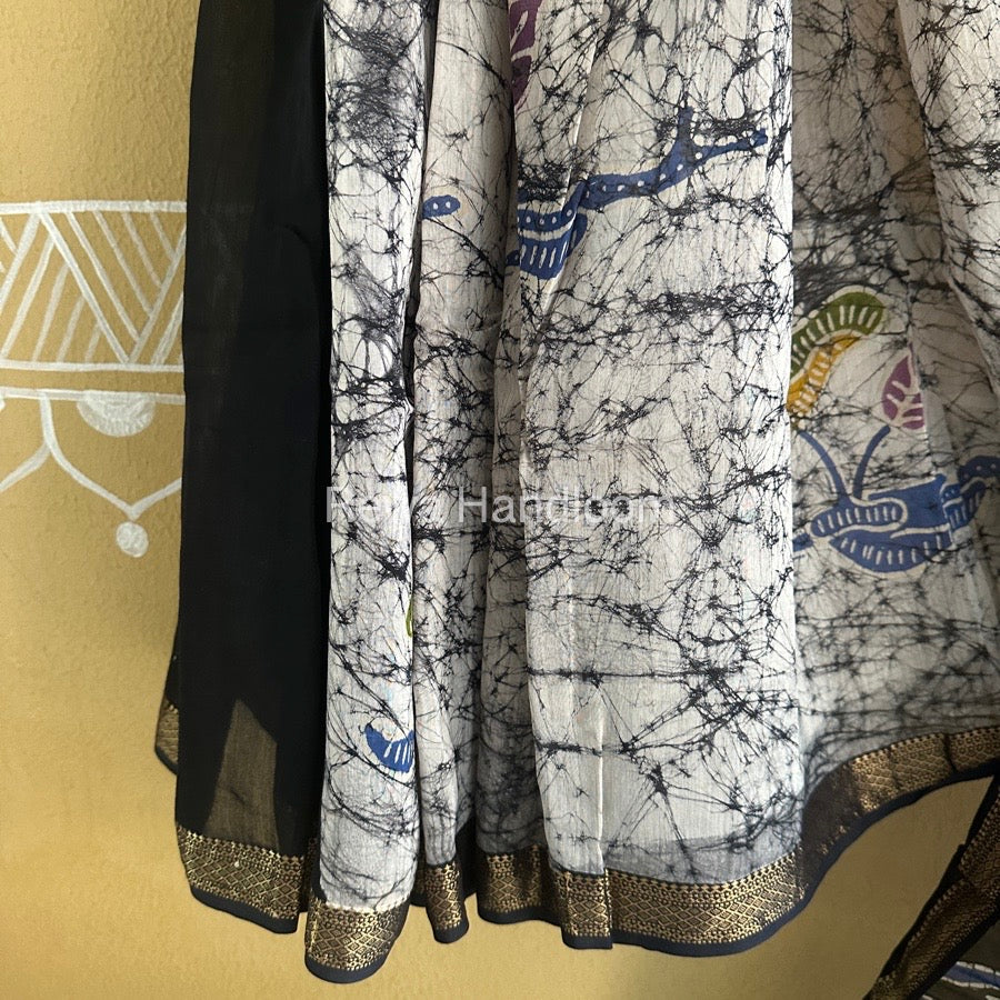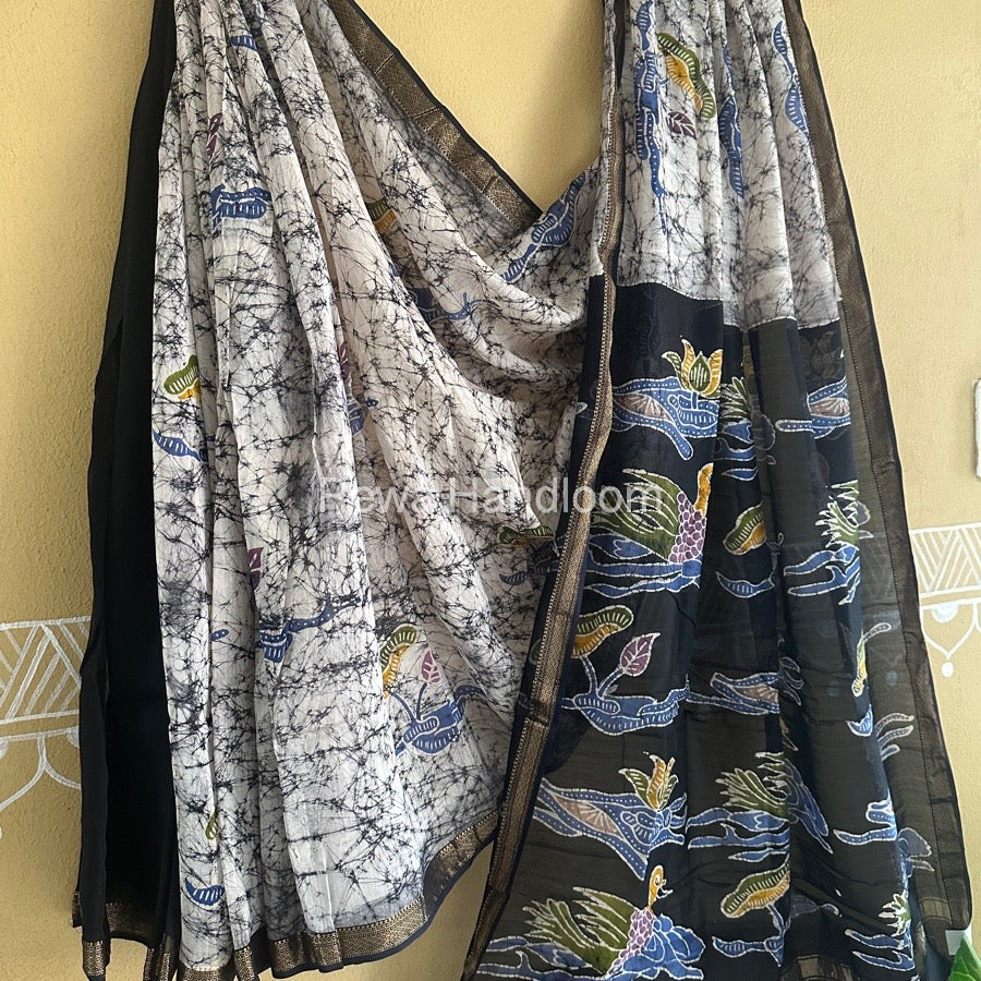 Maheshwari Black Batik Indonesian Print Saree IBS036