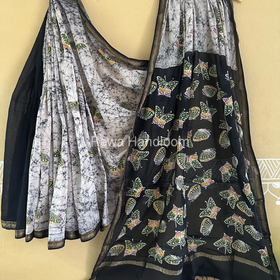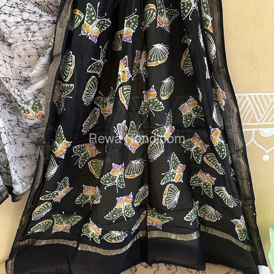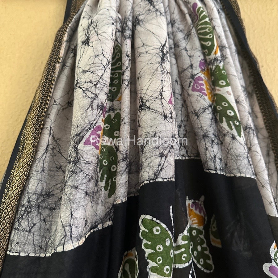 Maheshwari Black Batik Indonesian Print Saree IBS044