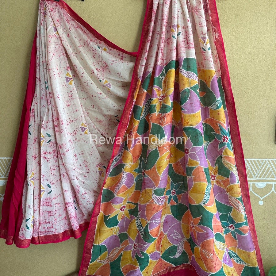 Maheshwari Pink Batik Indonesian Print Saree IBS03